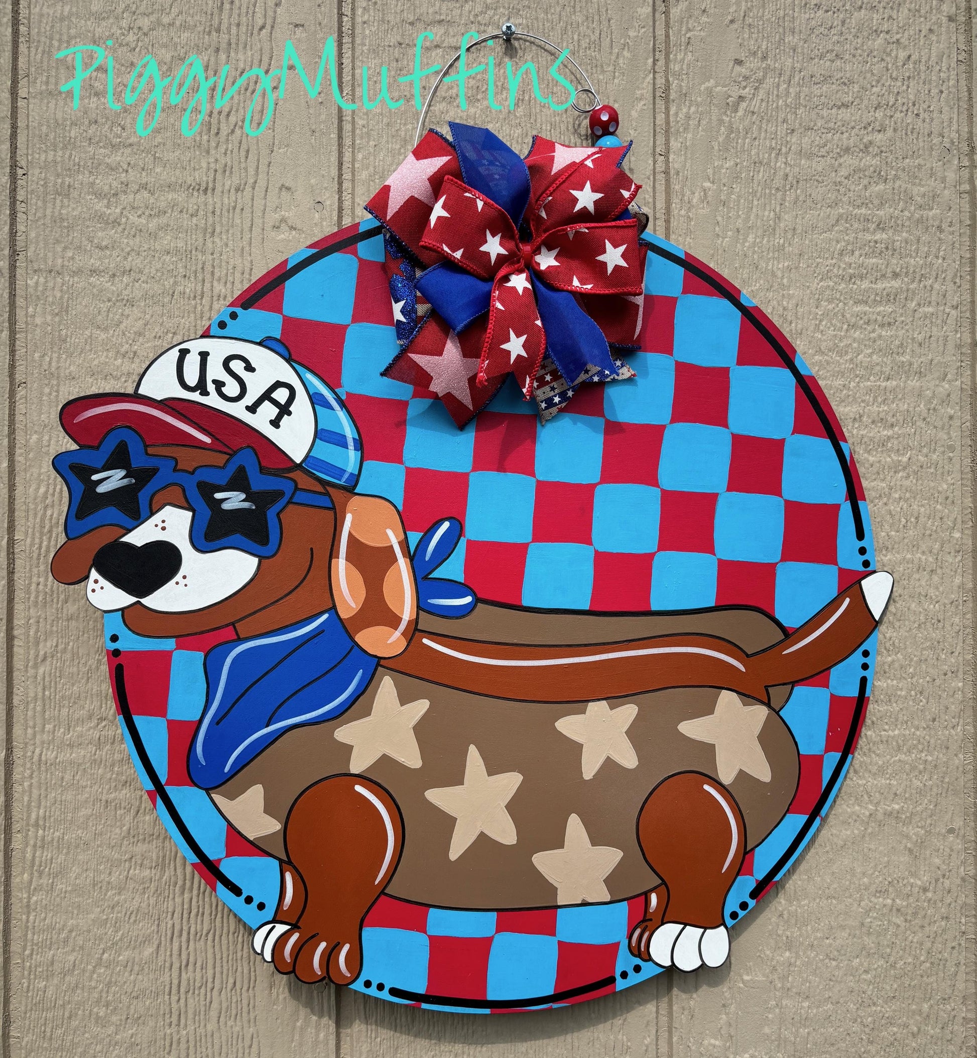 Patriotic Bassett Hound Door Hanger: 4th of July Decor