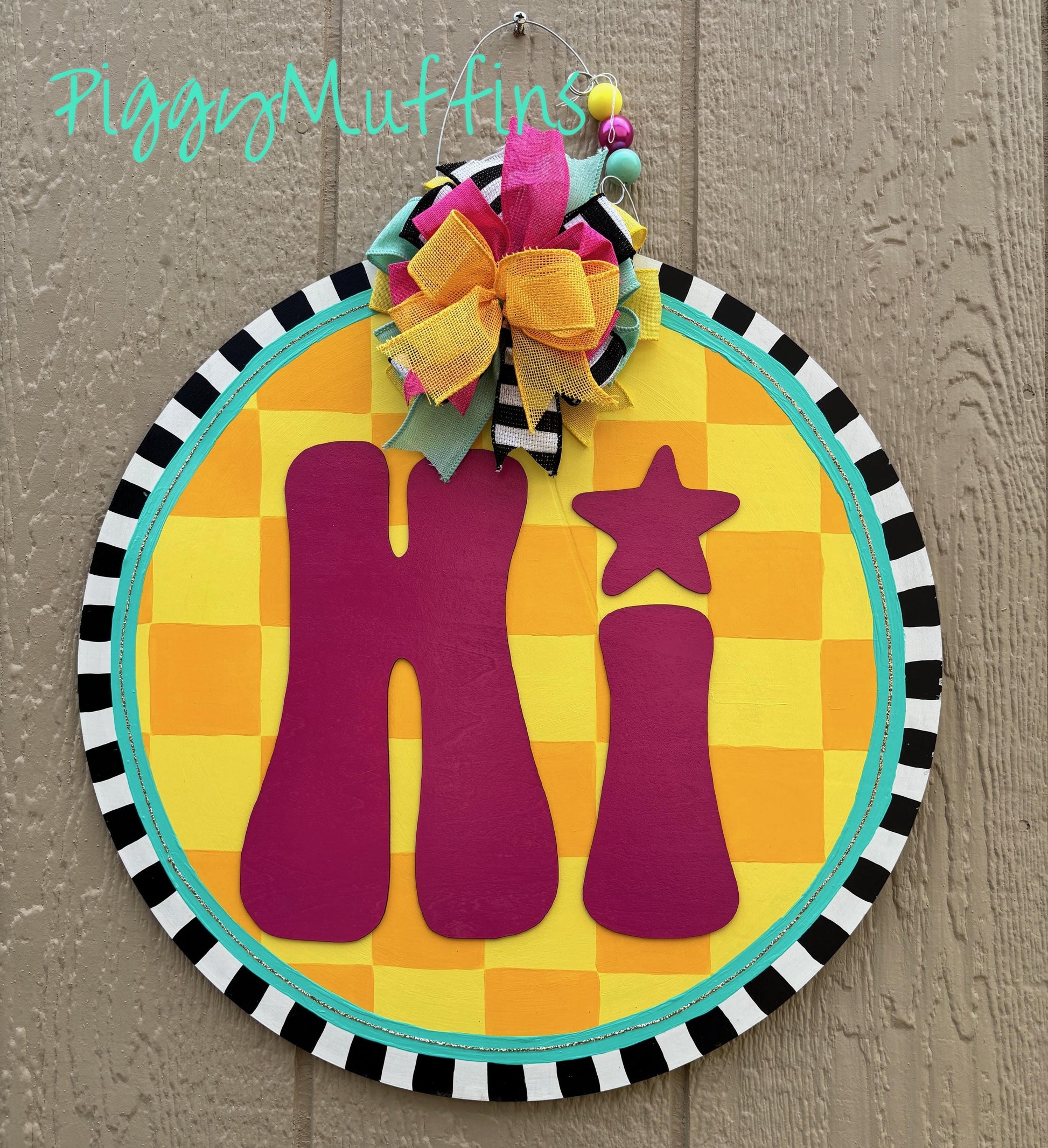 All Occasion Door Hanger - Checkerboard Door Hanger - Summer Door Hanger - Summer Wreath - Spring Door Hanger - PiggyMuffins