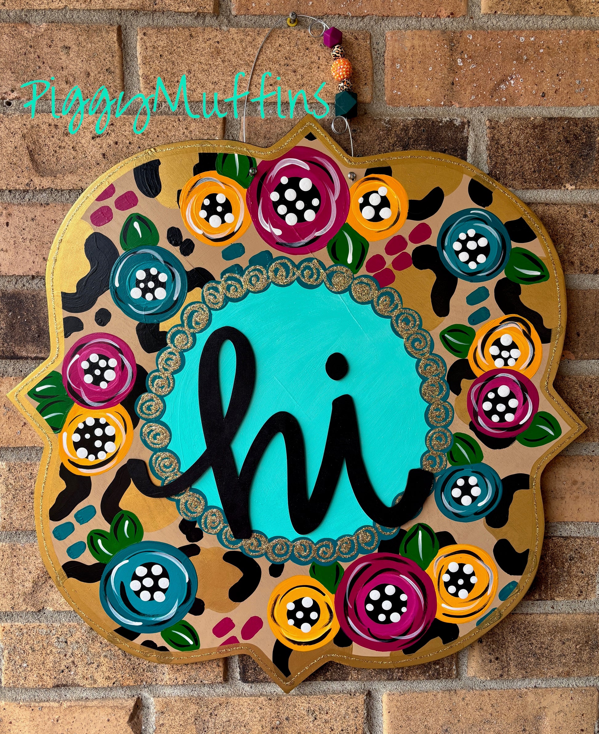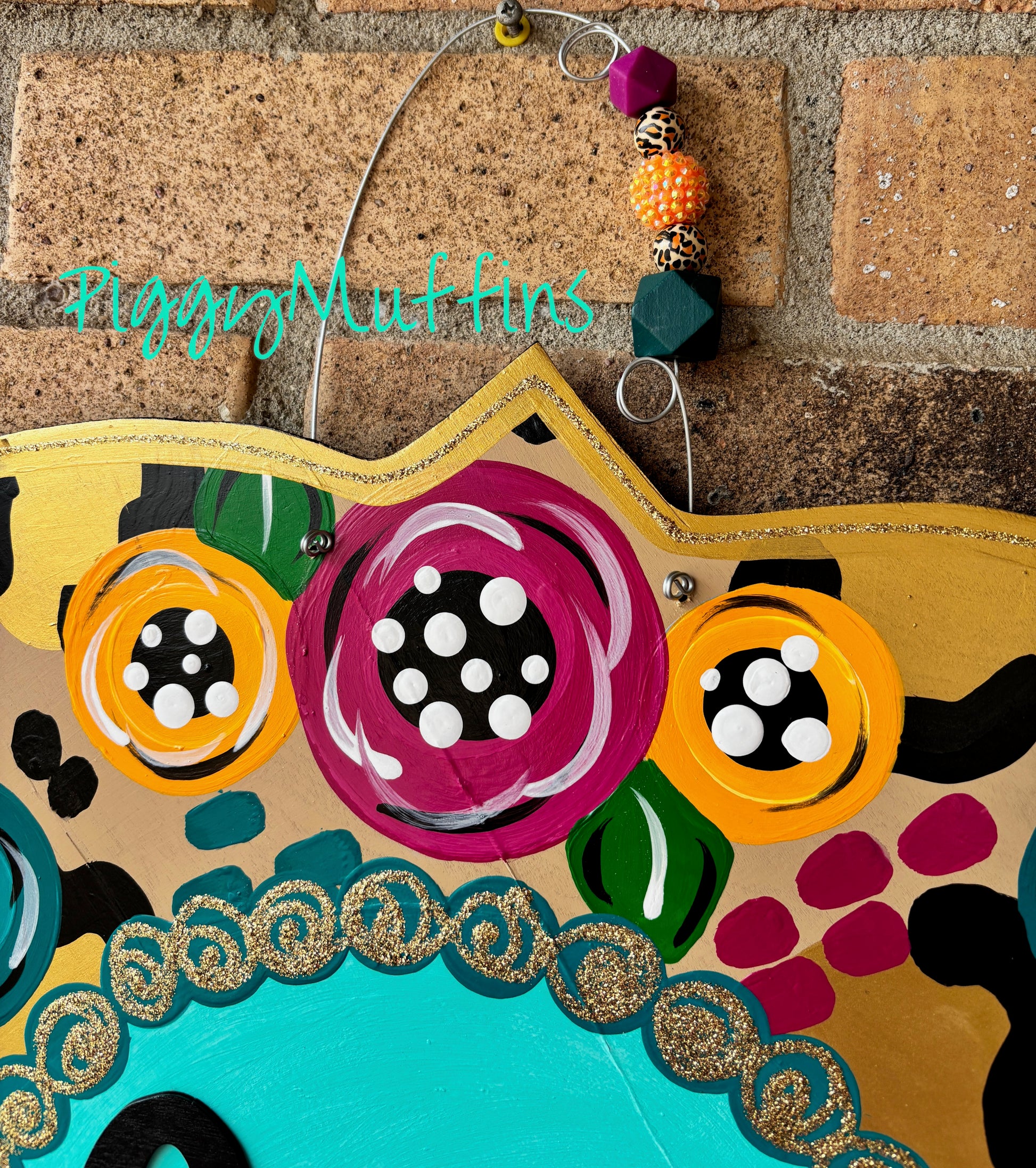 Floral Leopard Print Door Hanger: Custom Welcome Sign