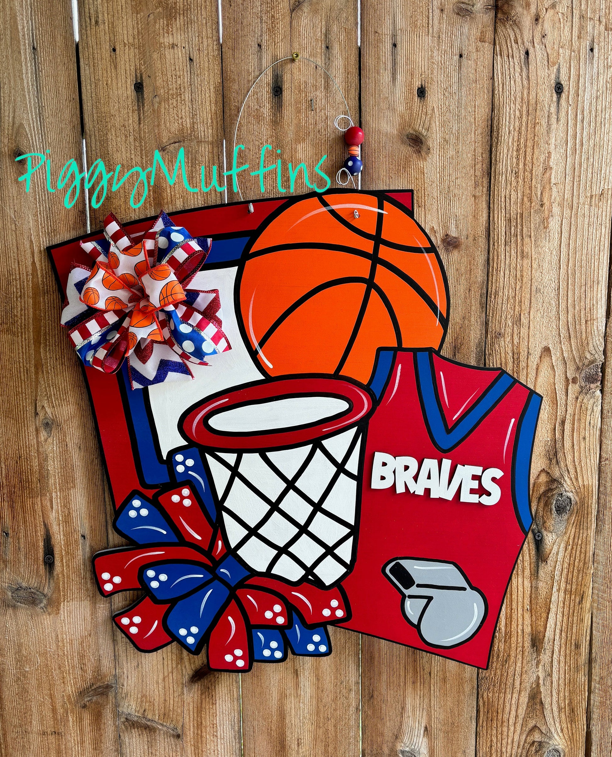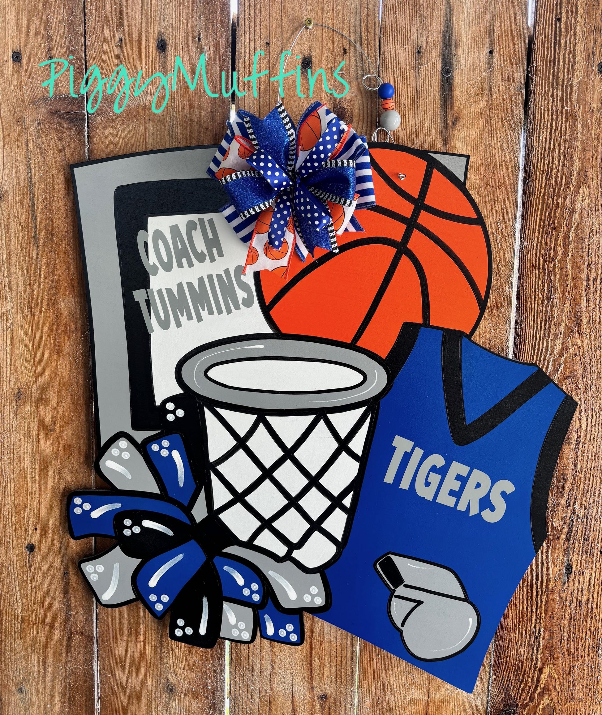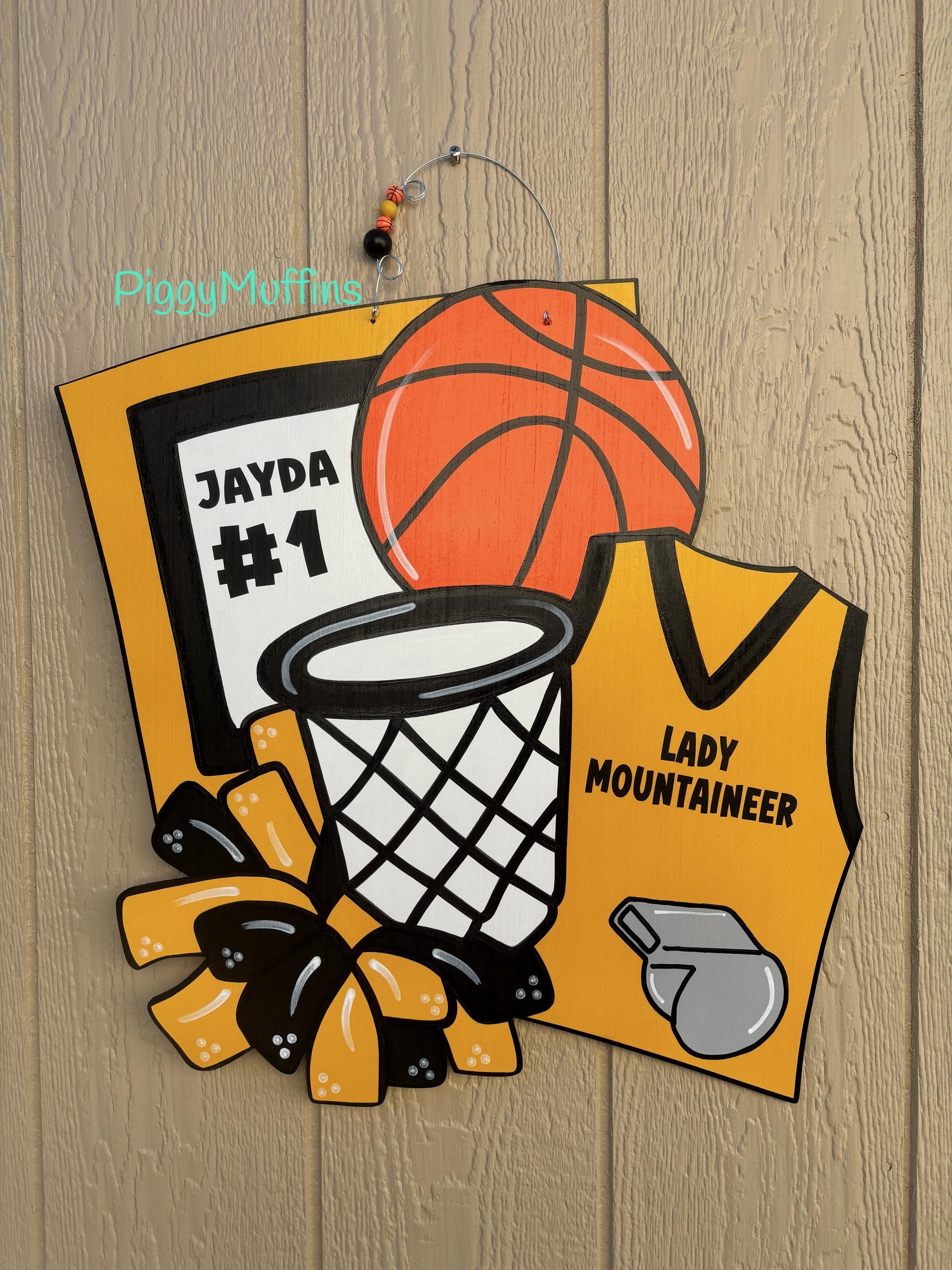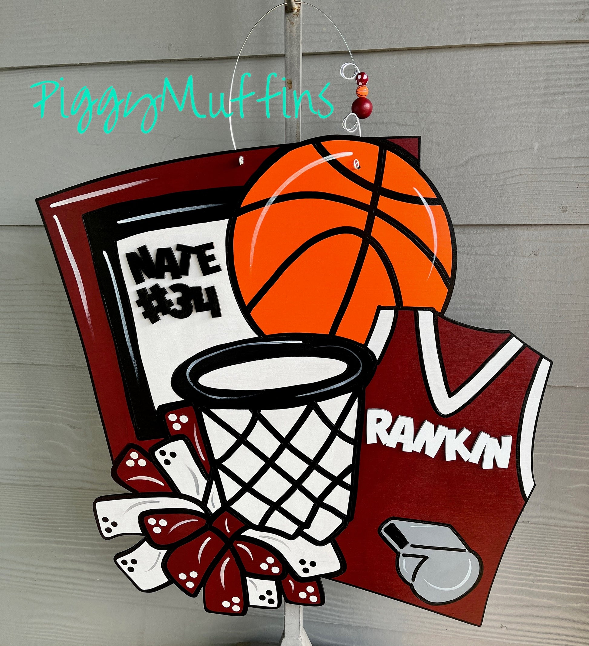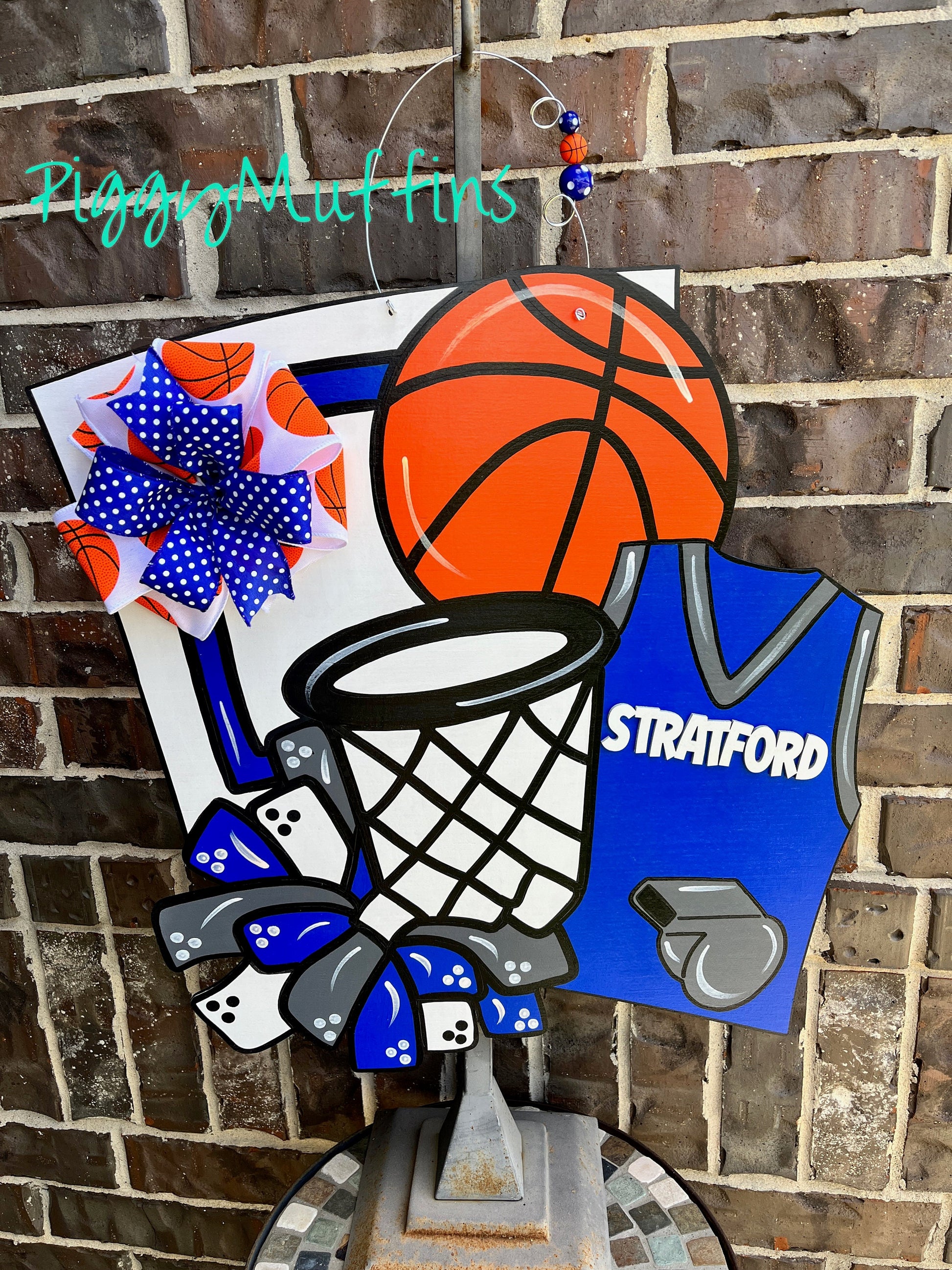 Show your school spirit for your favorite team or player with this adorable basketball door hanger from PIggyMuffins! This Sports Door Hanger can be customized to your liking!