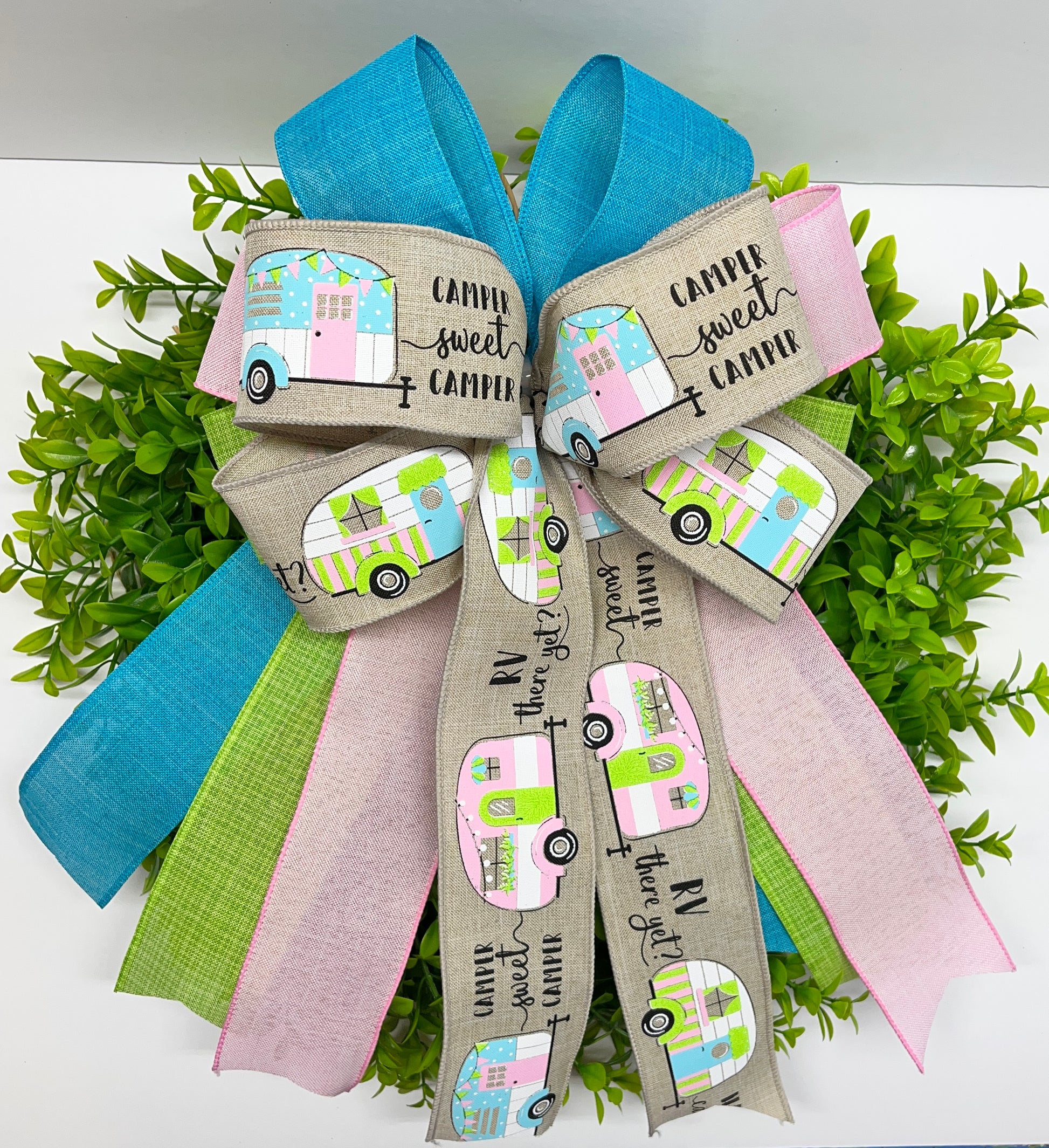 Camper Theme Wreath Bow: Colorful RV Spring Decor
