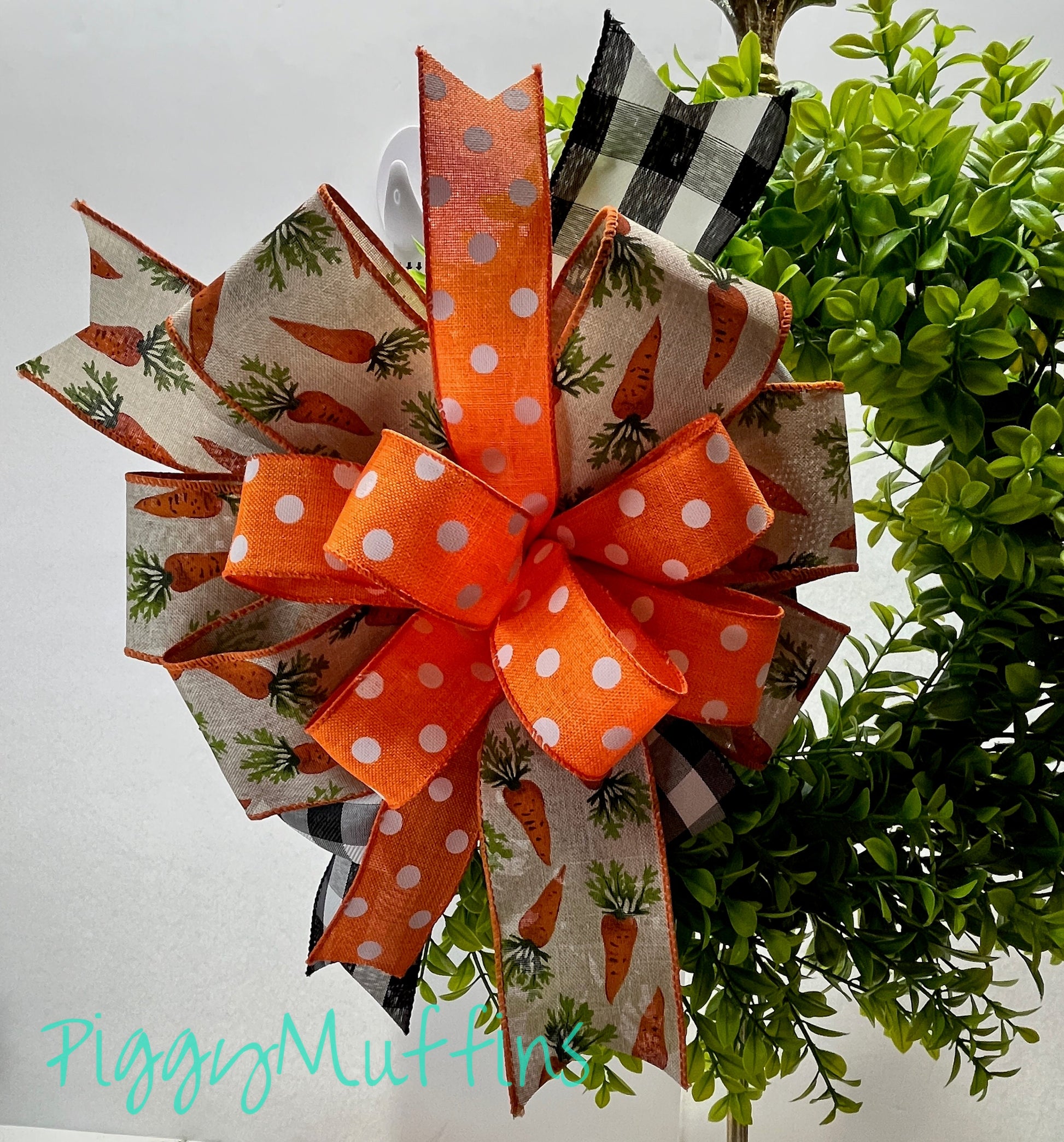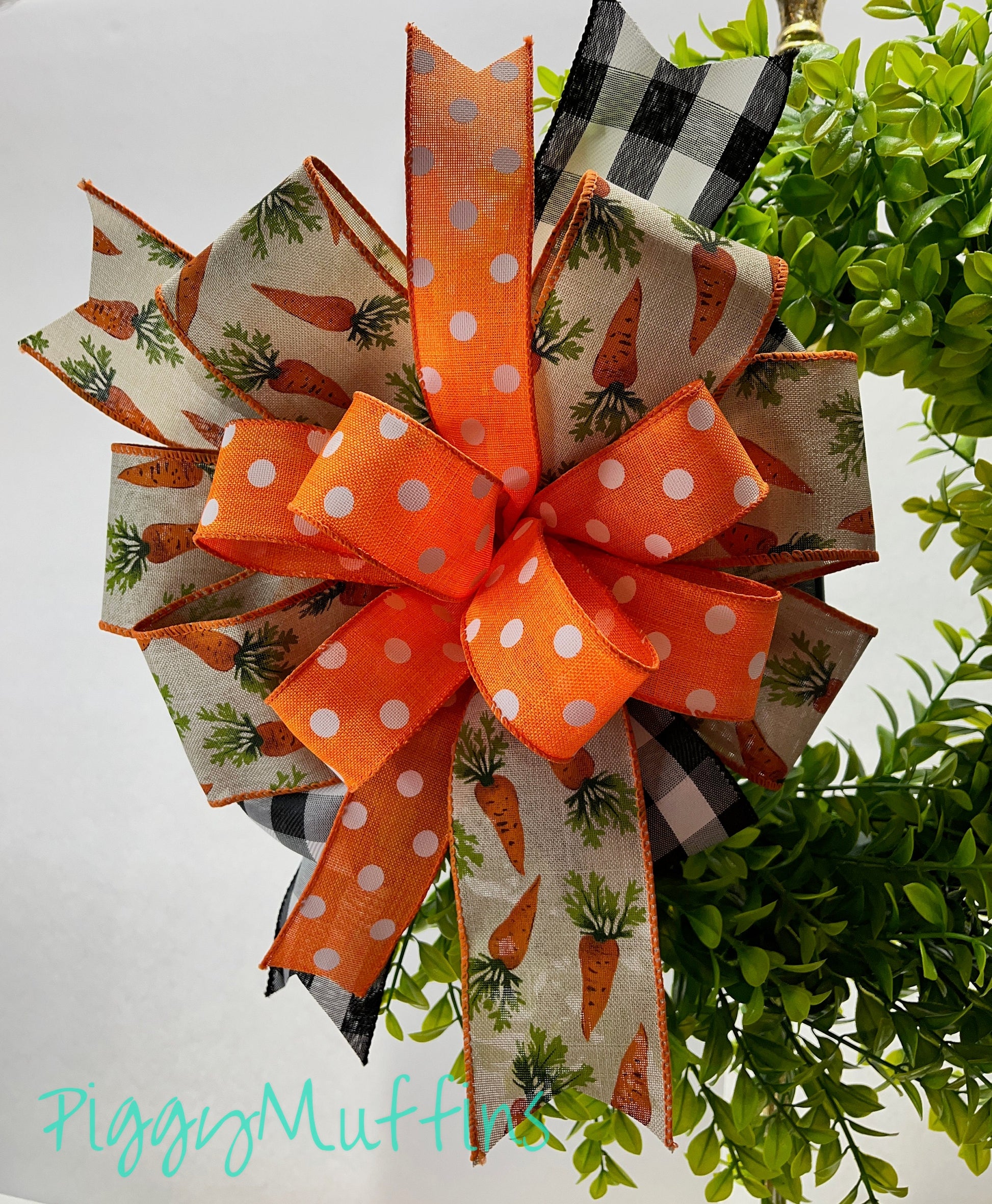 š Add a pop of color to your home decor with this Colorful Easter Carrot, Polka Dot and Buffalo Plaid Wreath Bow. It is the perfect addition to any pre-made greenery wreath or as a beautiful bow for all of your Spring and Easter celebrations!