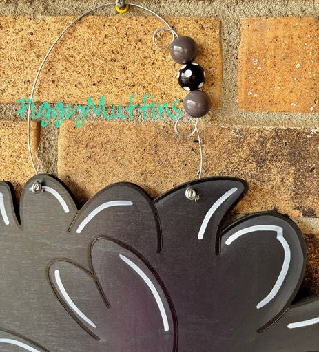 Welcome your guests with this adorable chick! The sign measures approximately 22 inches in length and 20 inches in width. This sign is cut out of 1/4 inch board, sanded and painted with acrylic paint and accented with polyester glitter. It is sealed with a clear protective coating that prevents chipping, peeling, fading, or yellowing. It includes a sturdy wire hanger and coordinating and is ready to hang when delivered.