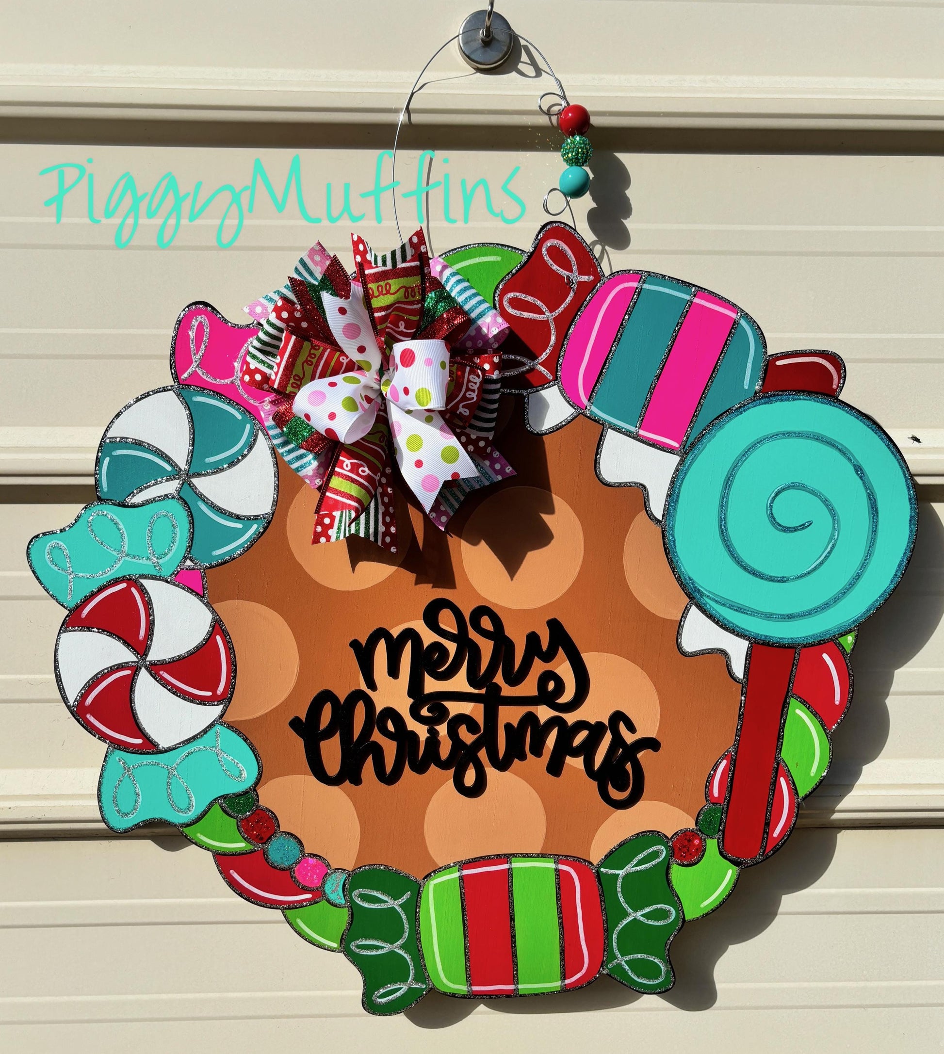 Gingerbread Candy Christmas Door Hanger: Winter Wreath