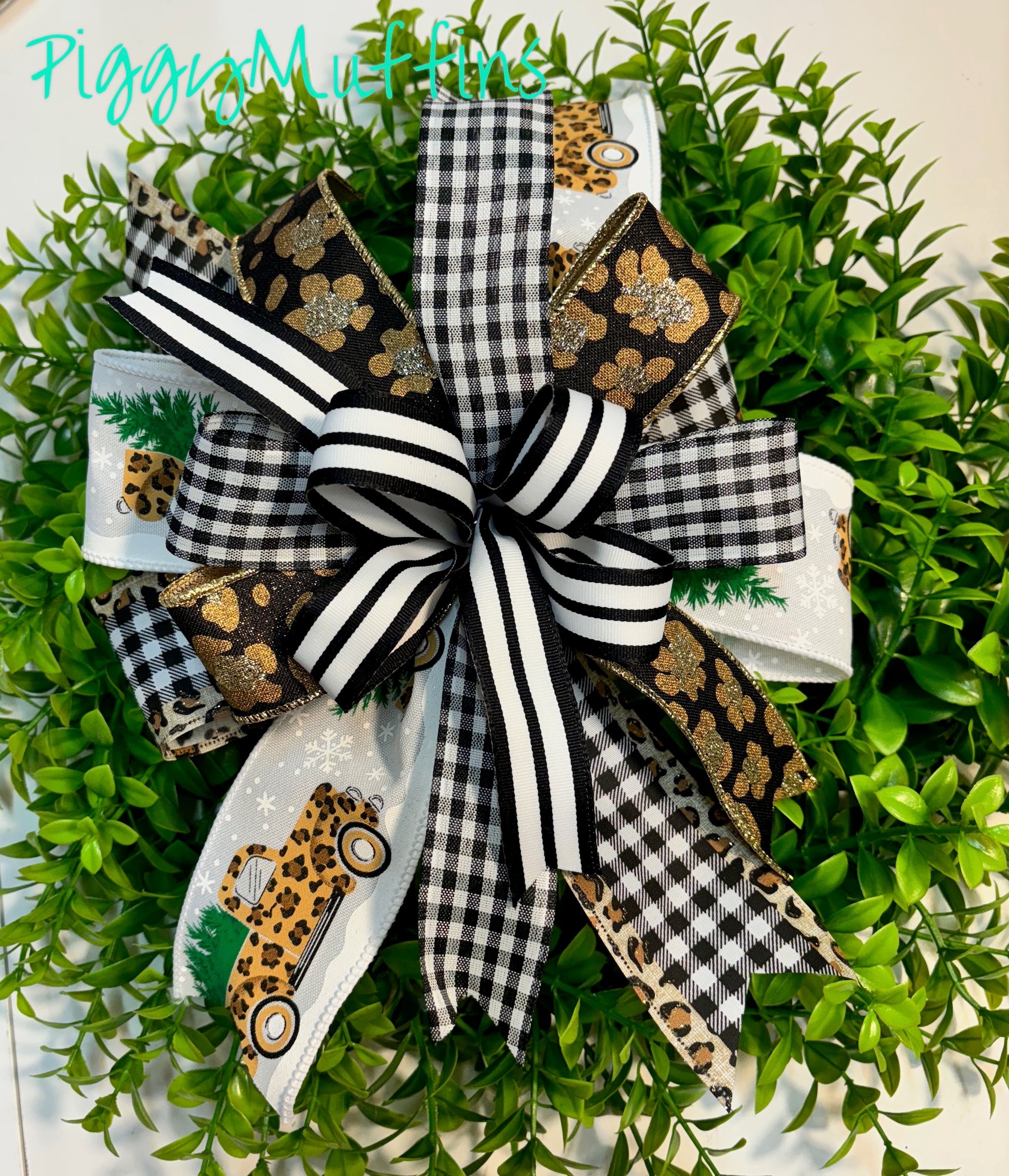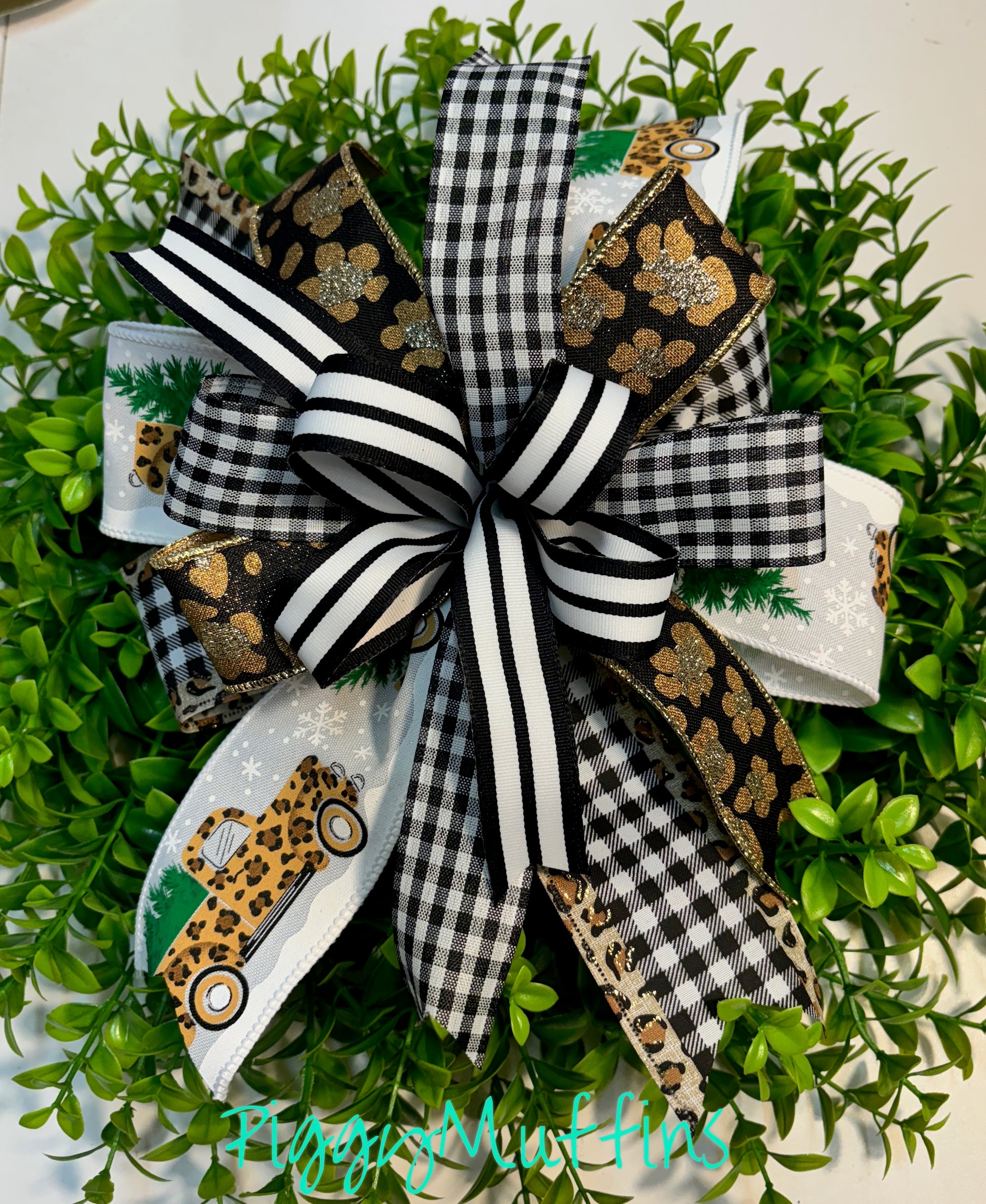 π Add a gorgeous pop of color to your home decor with this Black and White Christmas Bow. It is the perfect addition to any pre-made greenery wreath or as a beautiful bow for a Christmas door hanger!