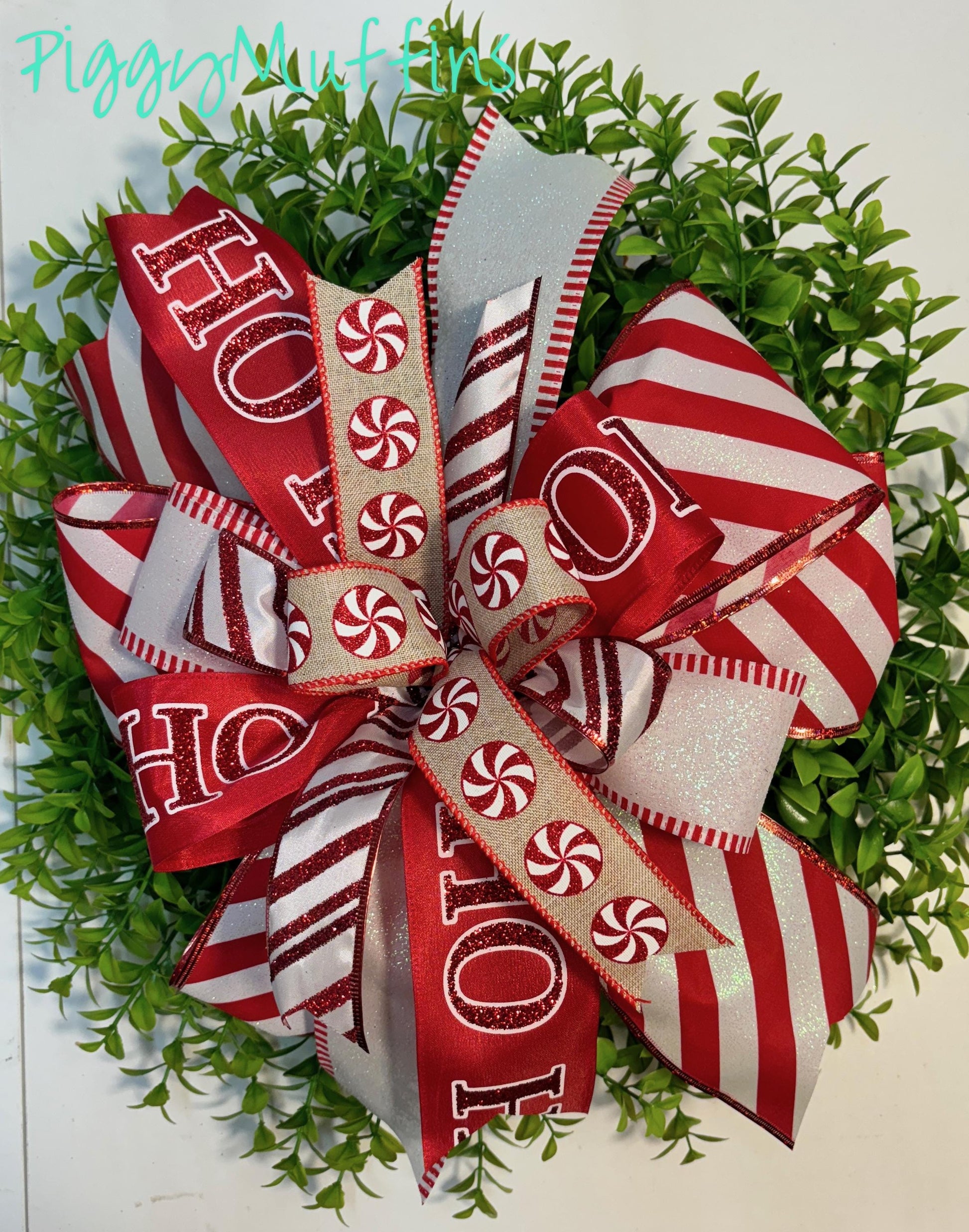 Red White Peppermint Christmas Bow: Handmade Wreath or Lantern Decor