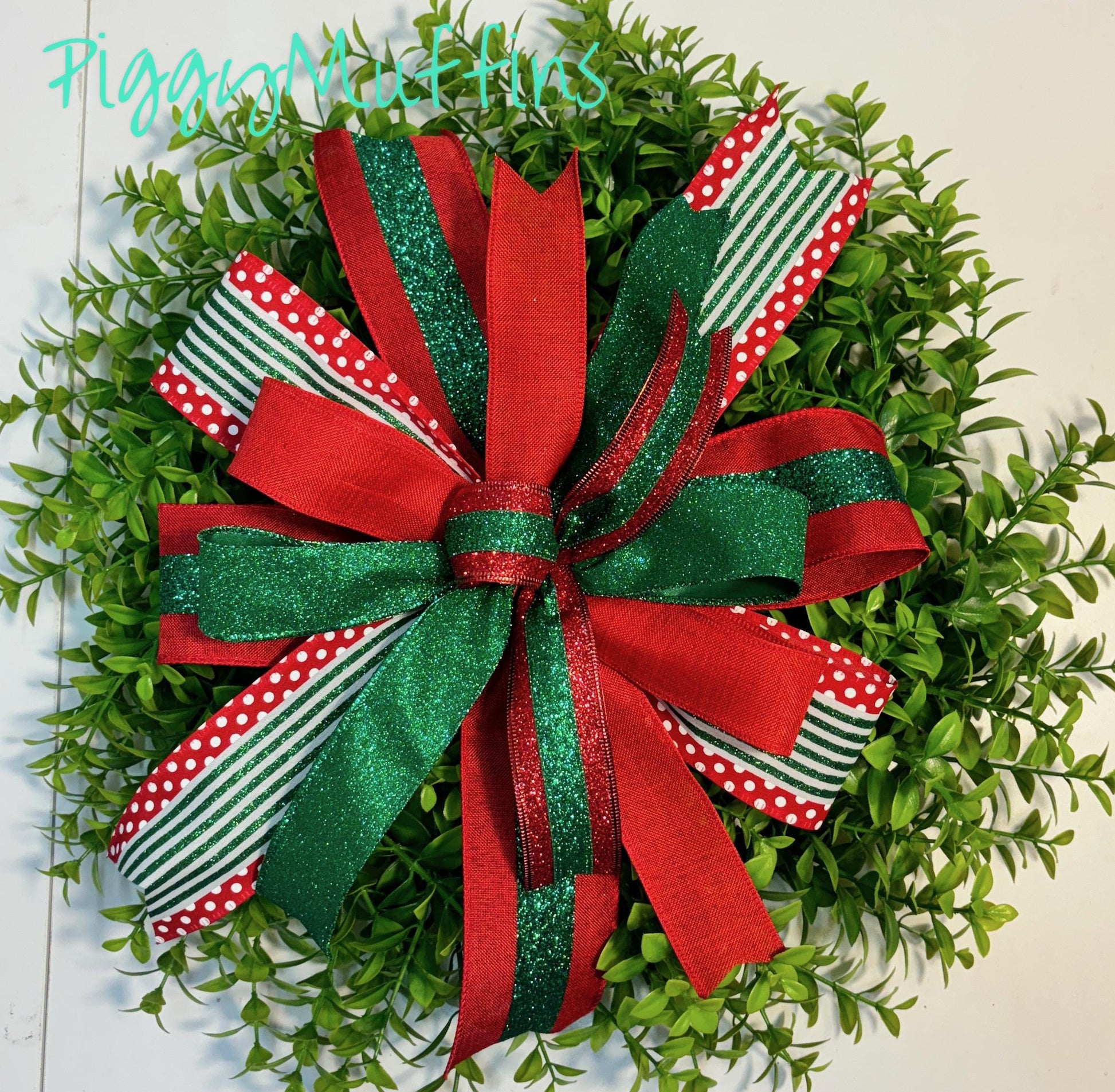 Red and Green Polka Dot Christmas Bow: Handmade Wreath or Lantern Decor
