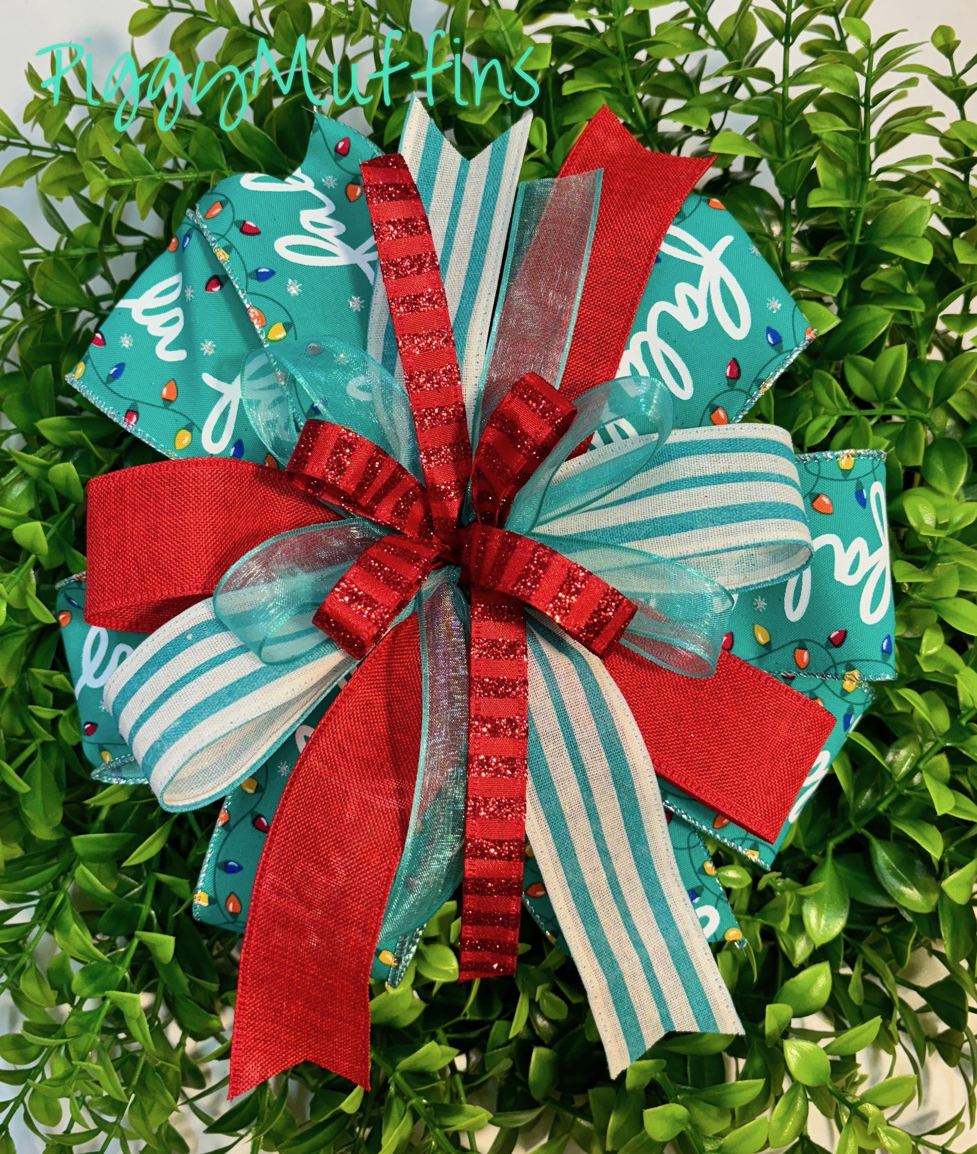 Red & Turquoise Christmas Bow: Handmade Layered Wreath or Lantern Bow