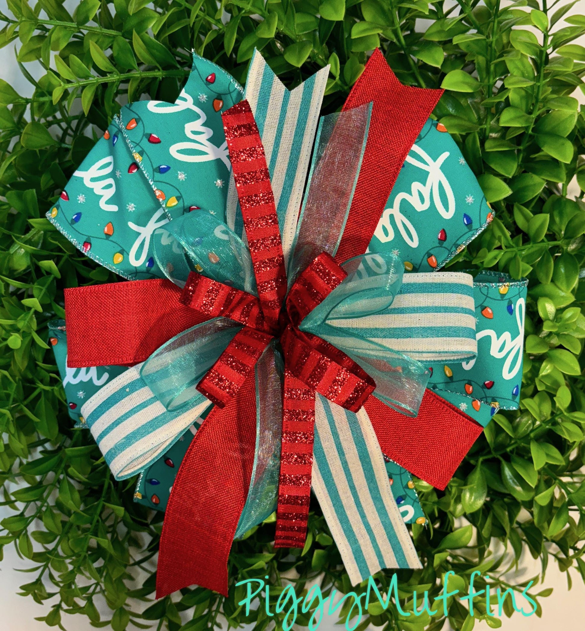 š Add a gorgeous pop of color to your home decor with this Red and Turquoise Fa La La La Christmas Bow. It is the perfect addition to any pre-made greenery wreath or as a beautiful bow for a Christmas door hanger!