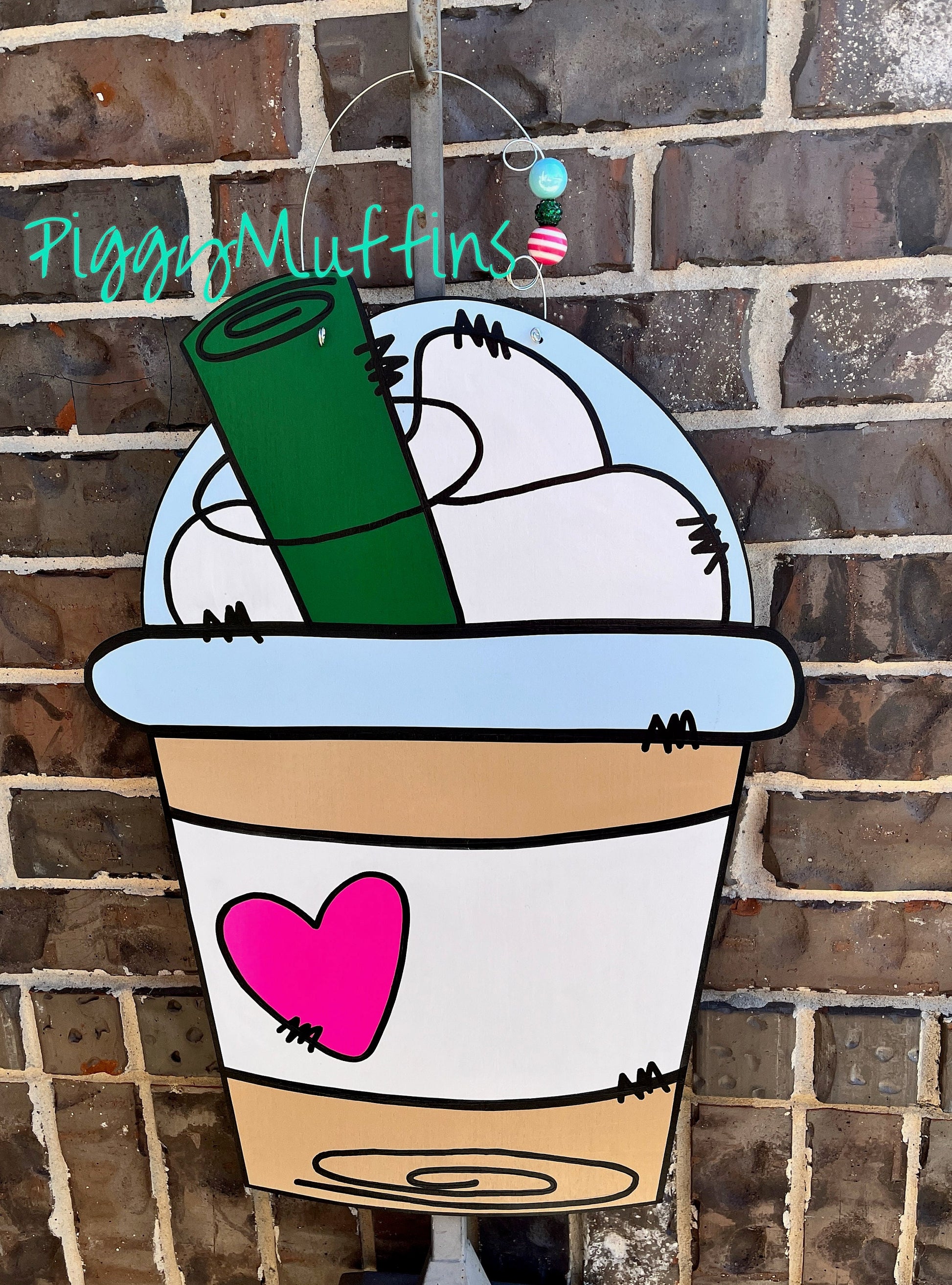 Personalize this ADORABLE Coffee Door Hanger by PiggyMuffins for the perfect welcome to your home! It also makes the perfect gift for any classroom as a teacher door hanger! This sign is cut out of 1/4 inch board, sanded and painted with acrylic paint. It is sealed with a clear protective coating that prevents chipping, peeling, fading, or yellowing. It includes a sturdy wire hanger and coordinating bow and is ready to hang when delivered.