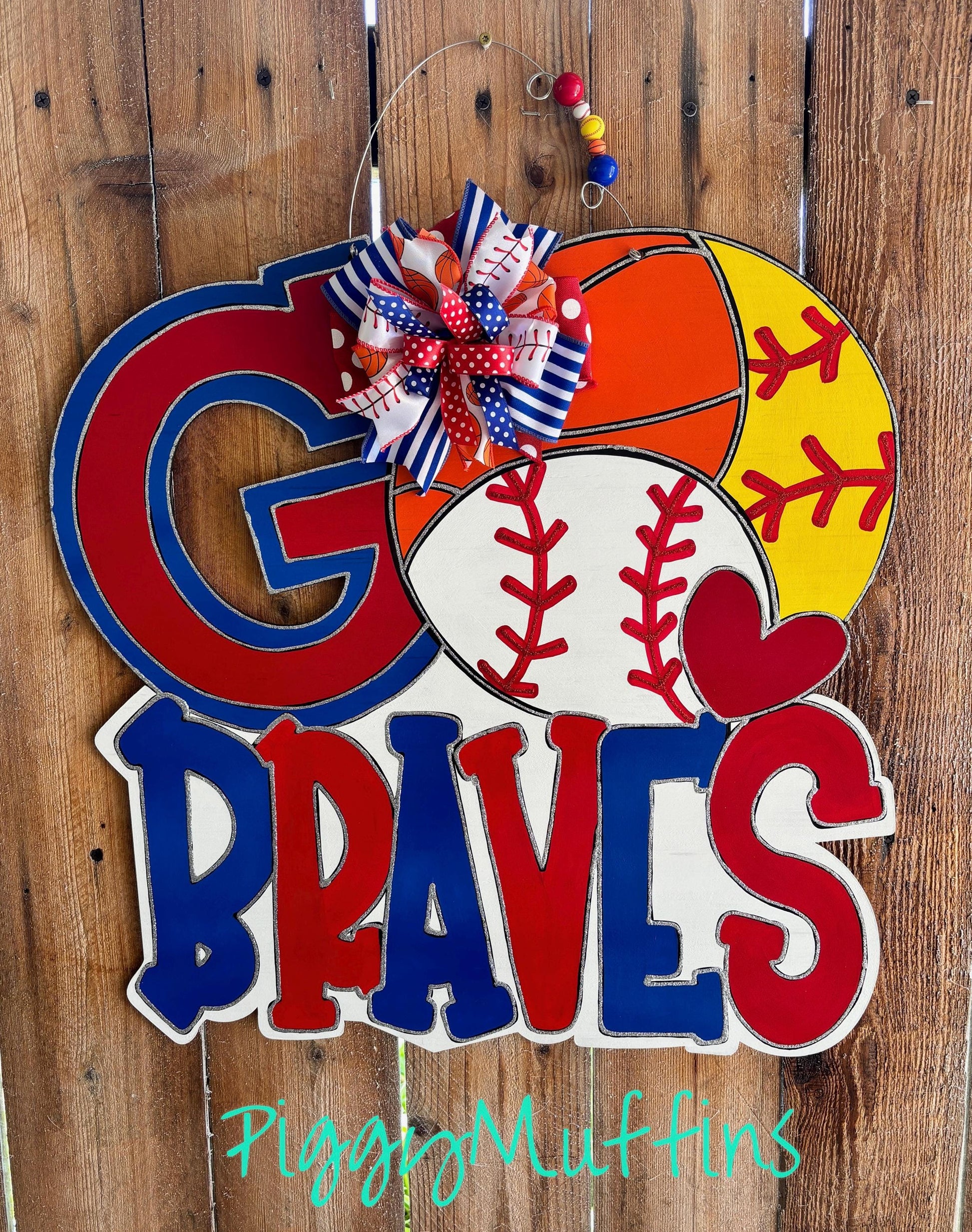 Get ready for all of your favorite sports and support your favorite team with this aDOORable CUSTOMIZABLE Sports Door Hanger by PiggyMuffins! It also makes a wonderful gift! This makes a great baseball door sign, softball door sign, Volleyball door hanger, or golf door hanger. It is cut out of 1/4 inch board, sanded and painted with acrylic paint. It is sealed with a clear protective coating that prevents chipping, peeling, fading, or yellowing. It includes a sturdy wire hanger and coordinating beads and is ready to hang when delivered. A coordinating bow can be added for an additional charge by choosing the "With Bow" option at checkout.