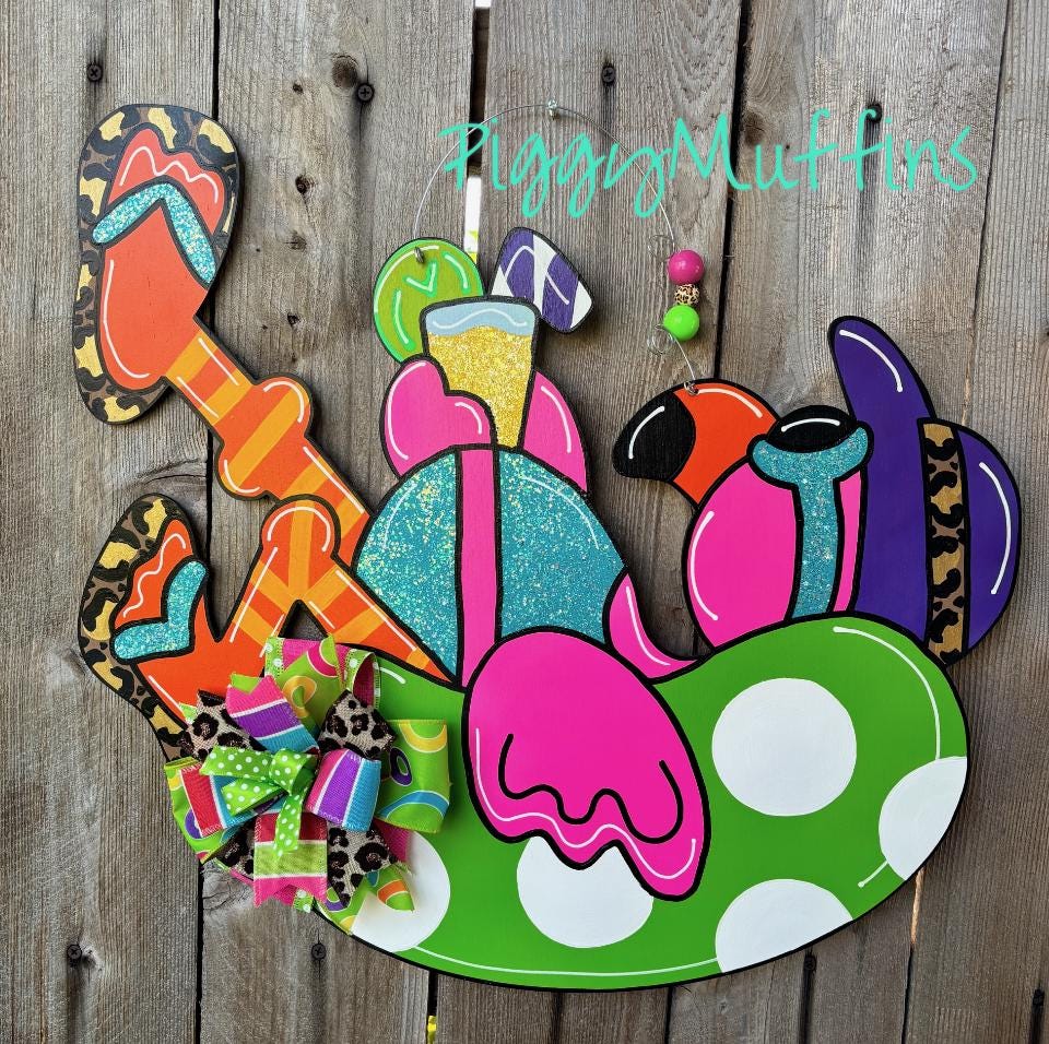 Flamingo Door Hanger - Summer Door Hanger - Flamingo Theme Door Hanger - Flamingo on Float Door Hanger