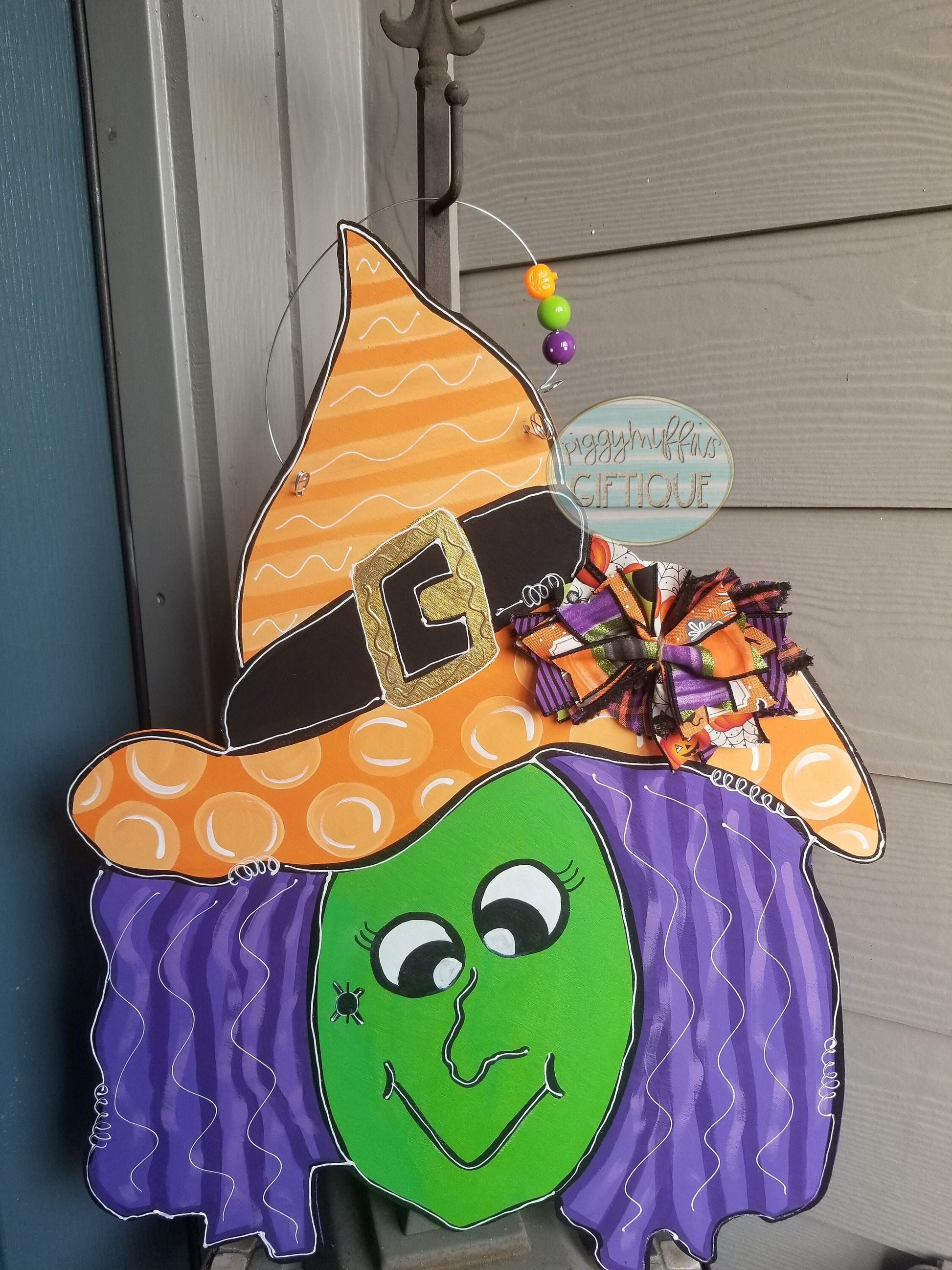 Whimsical Halloween Witch Door Hanger: Hand-Painted Fall Decor