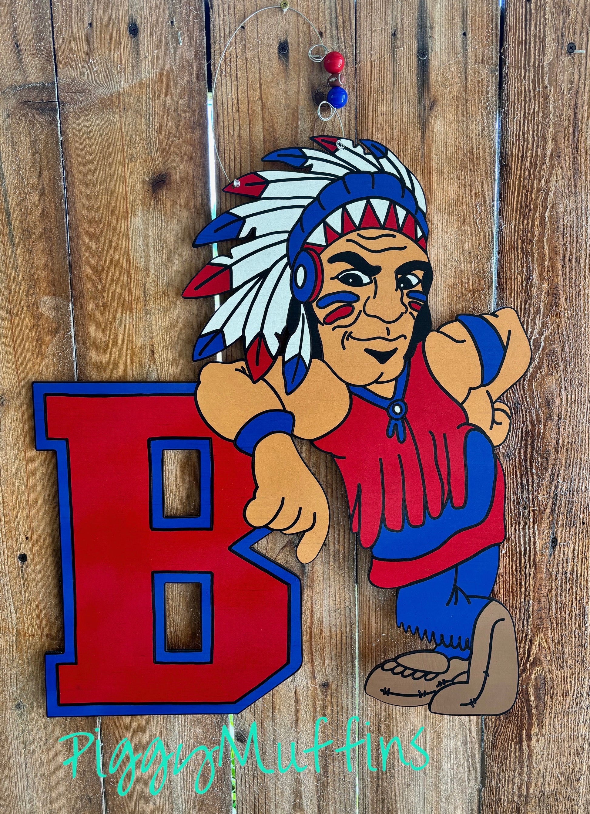 Show your school spirit for your favorite team or player with this adorable Indians mascot sign! Choose the letter of your team/school and colors for your own one-of-a-kind sign! If you are interested in other custom mascots, please reach out to me and I will be happy to accommodate.