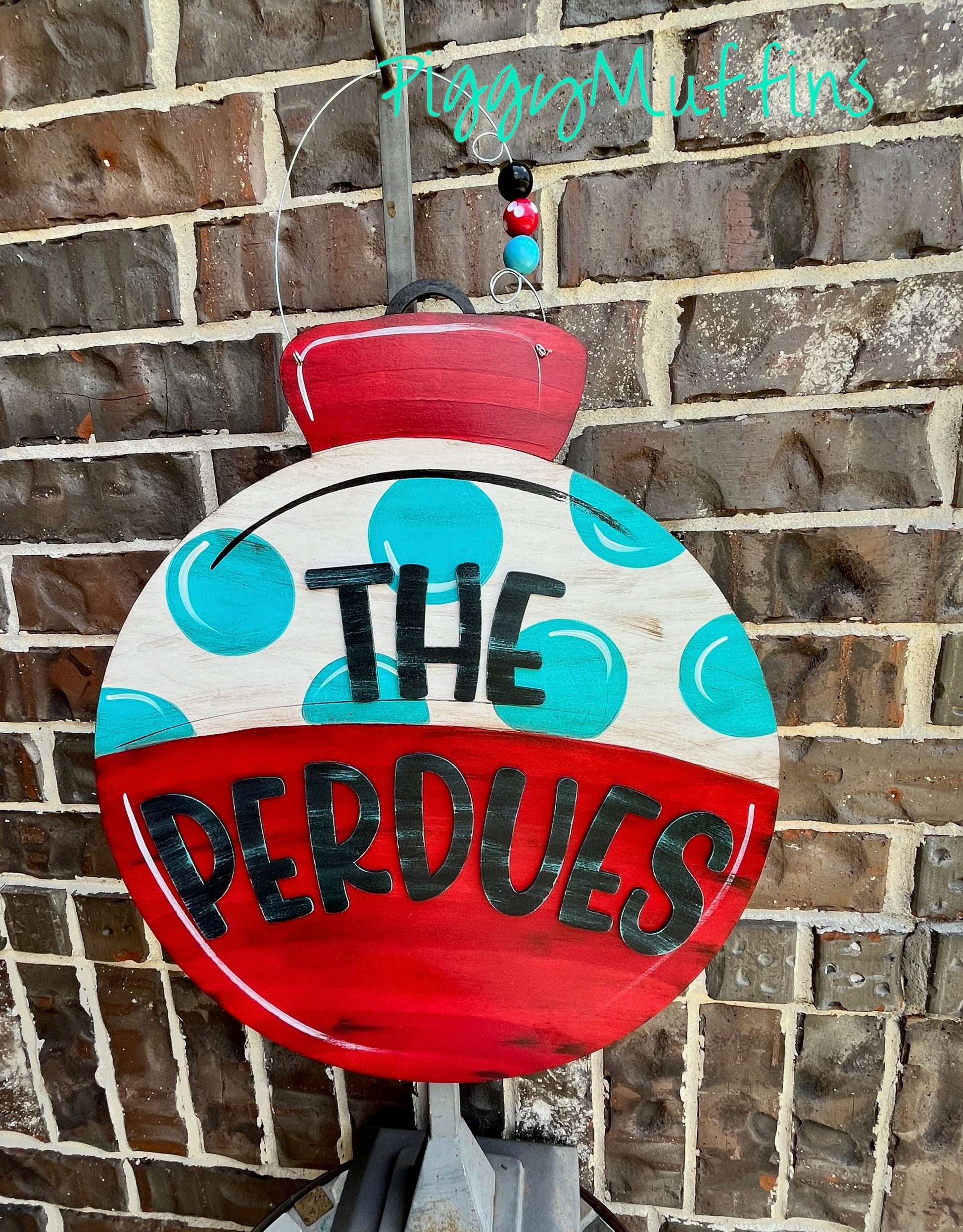 Welcome your guests to the lake with this adorable fishing bobber door hanger by PIggyMuffins! Personalize it with you family name, Initial or favorite greeting! This fishing door sign measures approximately 22 inches in length and 22 inches in width. This sign is cut out of 1/4 inch board, sanded and painted with acrylic paint and accented with polyester glitter. It is sealed with a clear protective coating that prevents chipping, peeling, fading, or yellowing. It includes a sturdy wire hanger and coordinating beads and is ready to hang when delivered. A coordinating bow can be added for an additional charge by choosing the "WITH Bow" option at checkout.