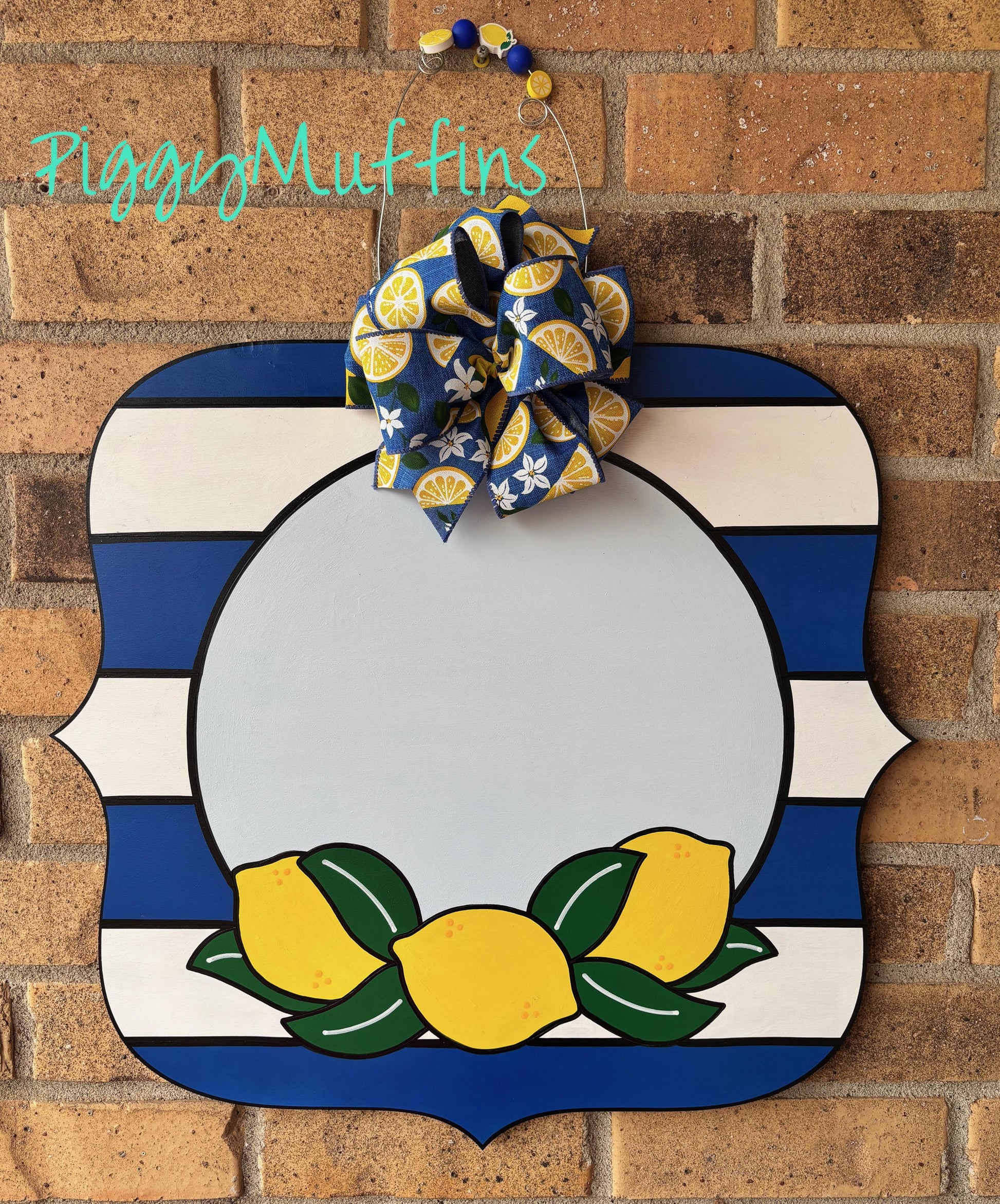 Personalize this cute summer lemon door hanger by PiggyMuffins with an initial for a monogram, or use any customizable greeting! Perfect for summer, this cute summer lemon welcome sign makes a great gift.