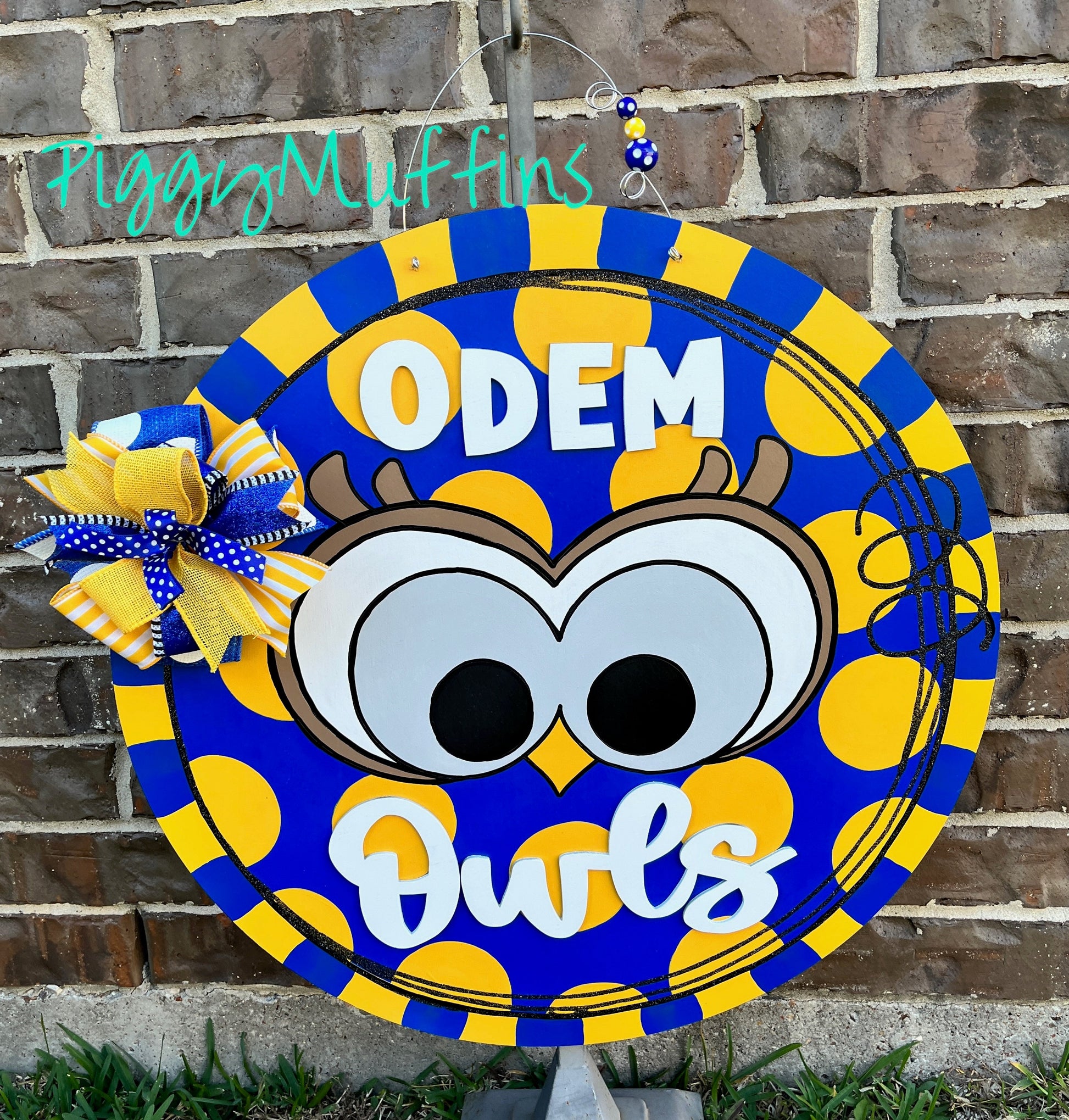 Owl Door Hanger - Owls Custom Mascot Door Hanger - Sports Door Hanger - Mascot Wreath - Sports Wreath - Door Hanger - PiggyMuffins