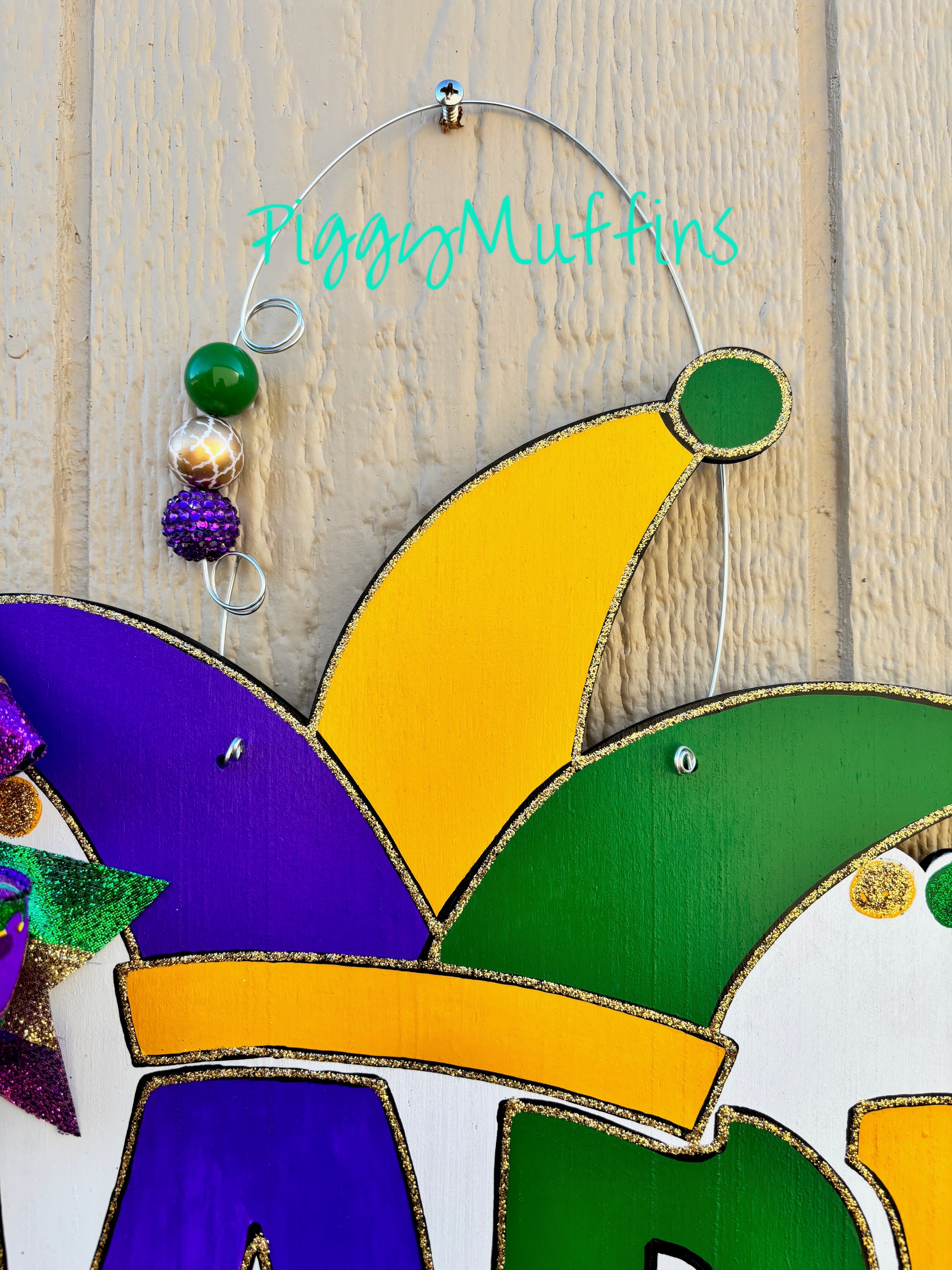 Mardi Gras Door Hanger: Glittering Acrylic Painted Sign