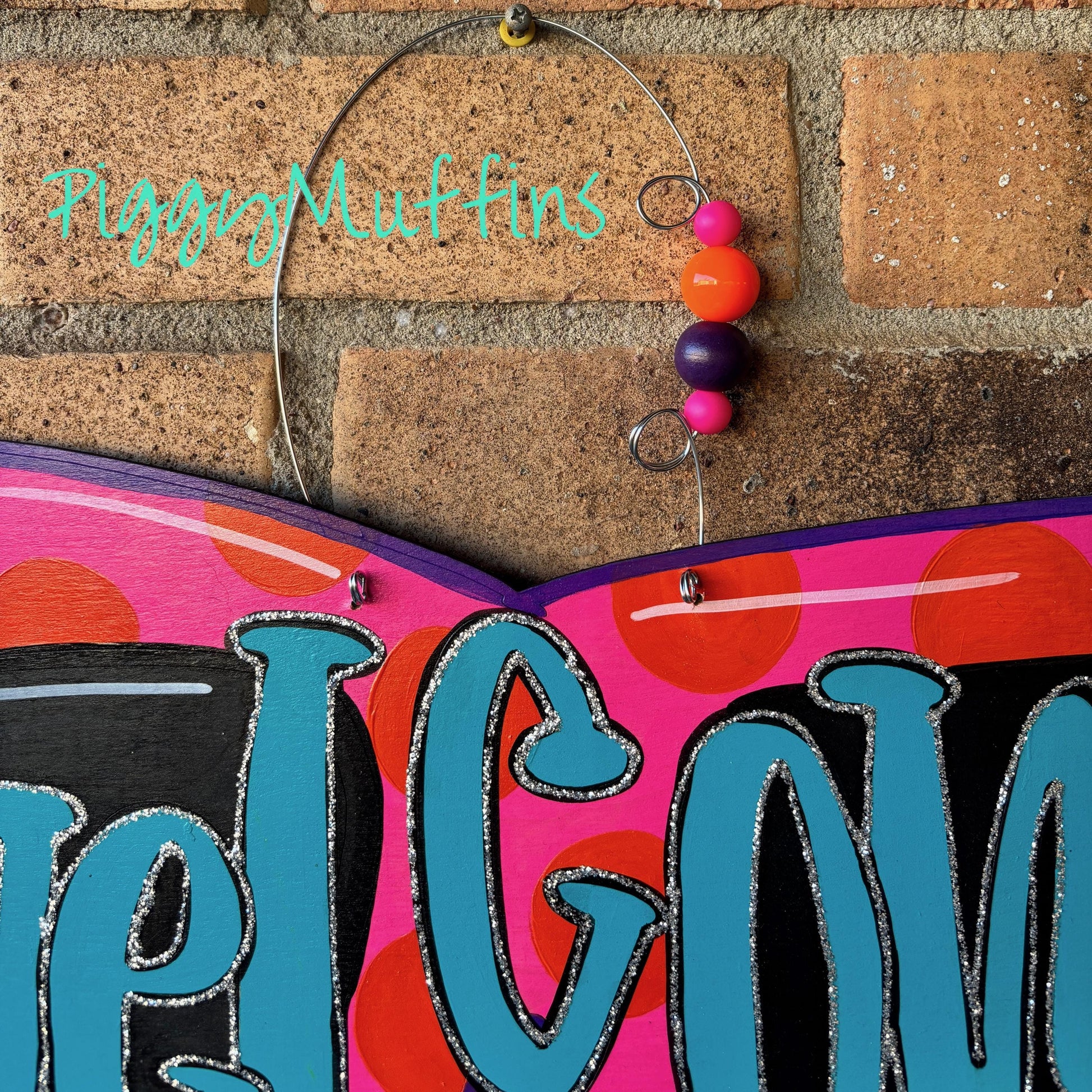 Welcome summer pool days with this adorable and bold Sunglasses door hanger by PiggyMuffins! The Summer door hanger measures approximately 18 inches in length and 22 inches in width. This pool door hanger is cut out of 1/4 inch board, sanded and painted with acrylic paint and accented with polyester glitter. It is sealed with a clear protective coating that prevents chipping, peeling, fading, or yellowing. It includes a sturdy wire hanger and is ready to hang when delivered. A coordinating bow can be added for an additional charge at checkout.