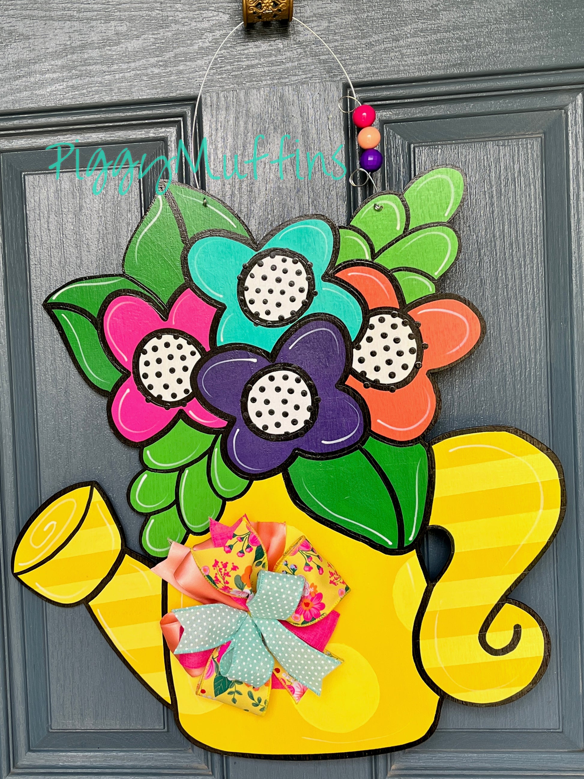 Floral Watering Can Door Hanger: Spring Easter Decor