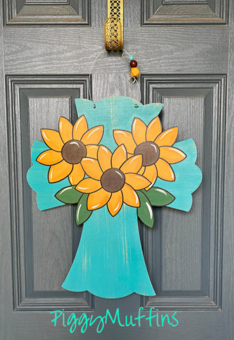 Sunflower Cross Door Hanger: Turquoise Summer Decor