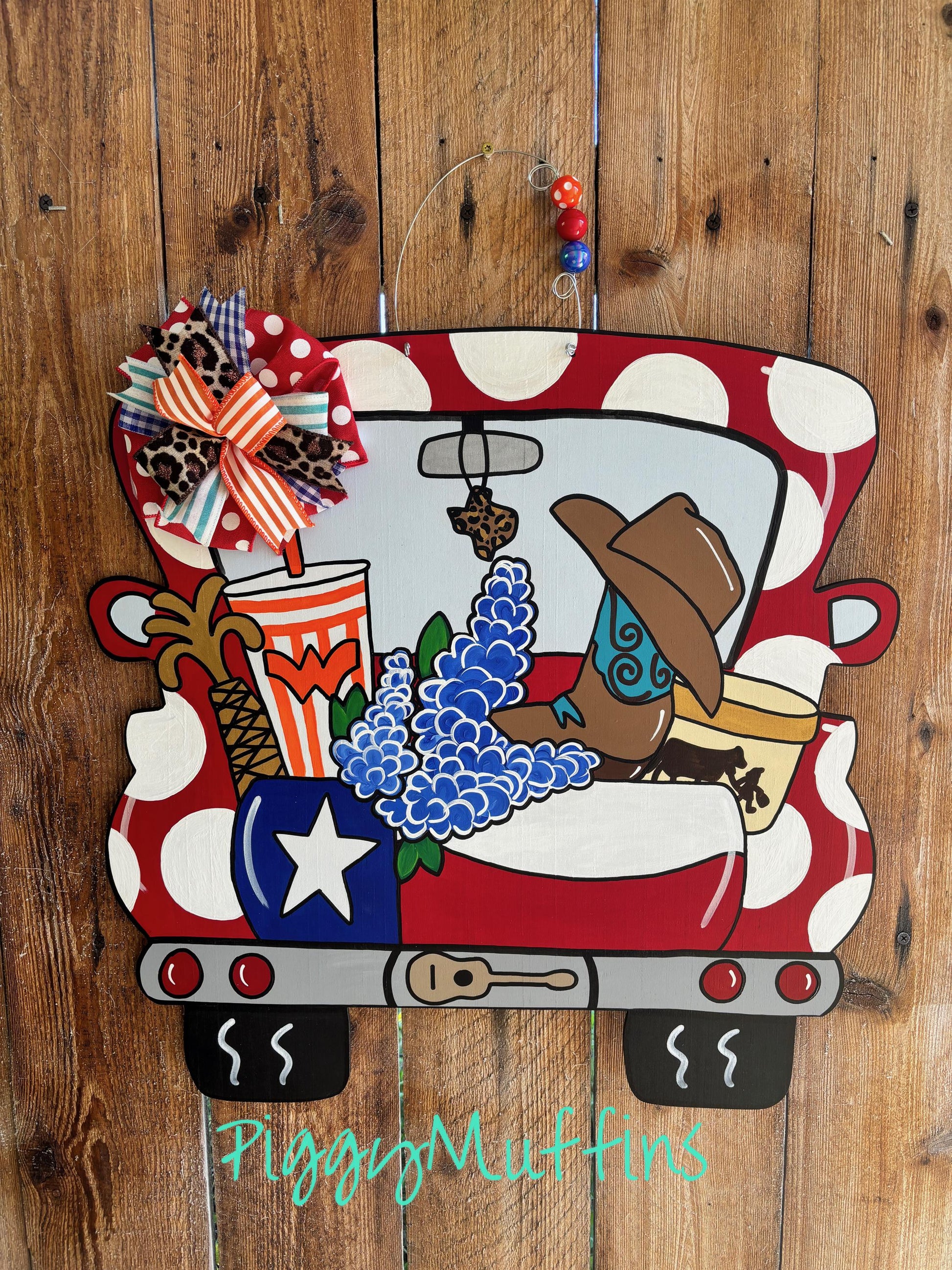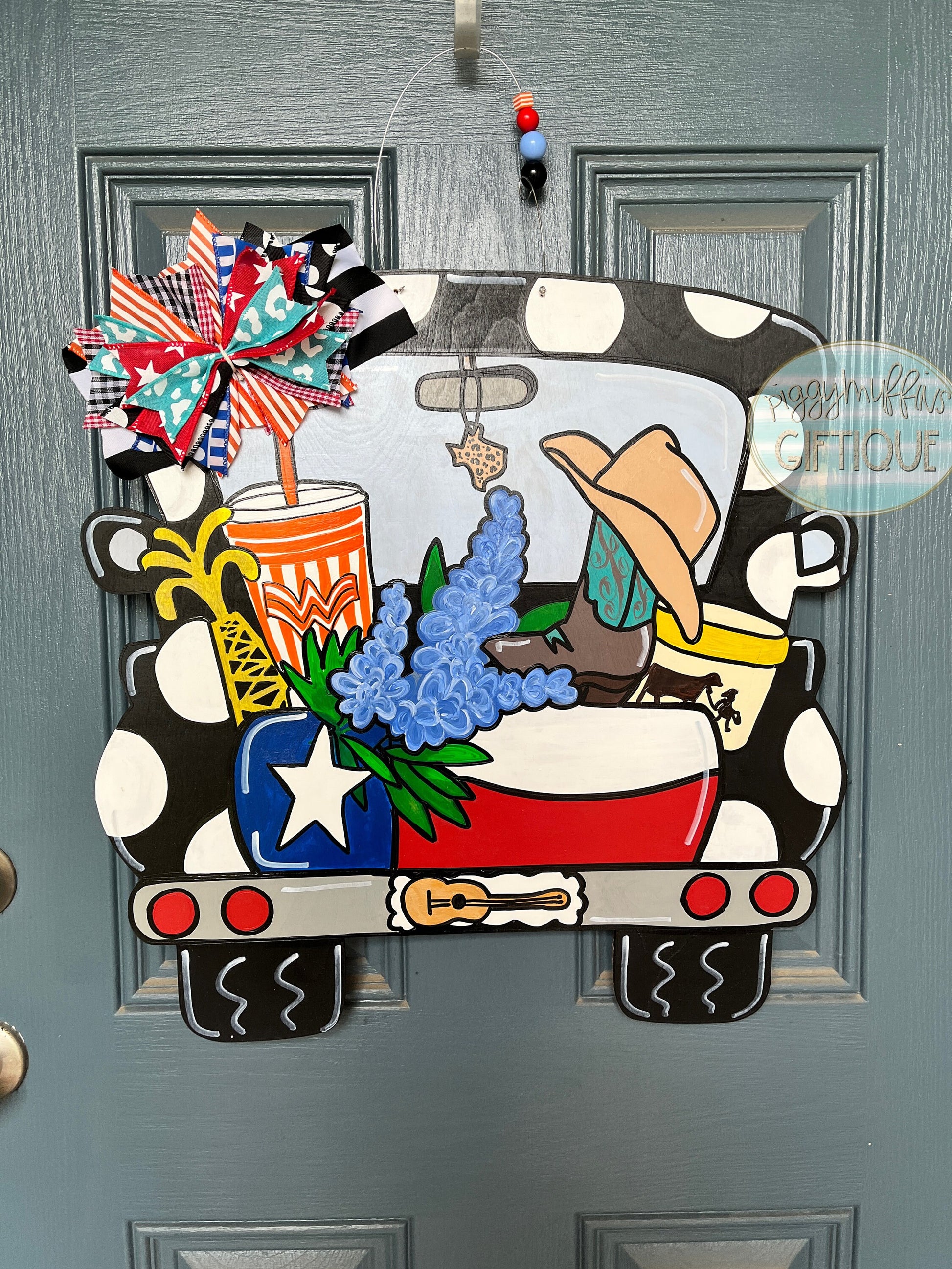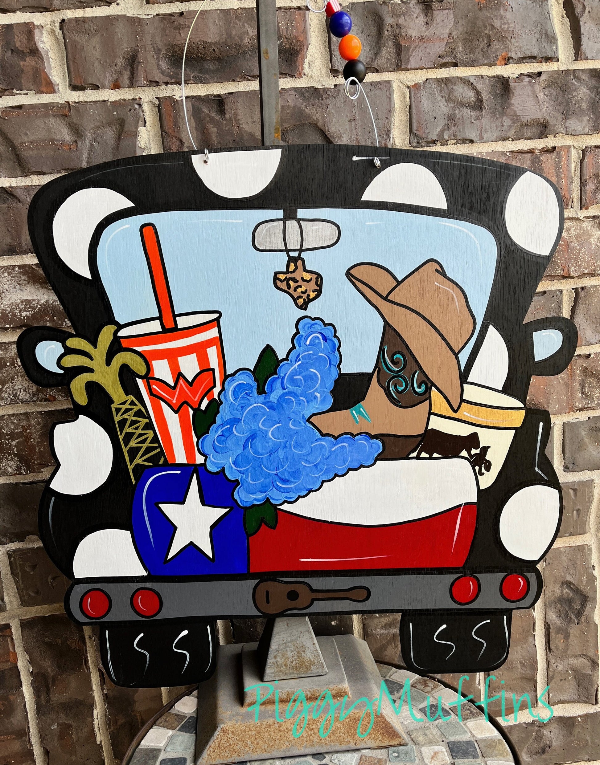 Texas Truck Door Hanger: Painted Acrylic Texas Theme Sign