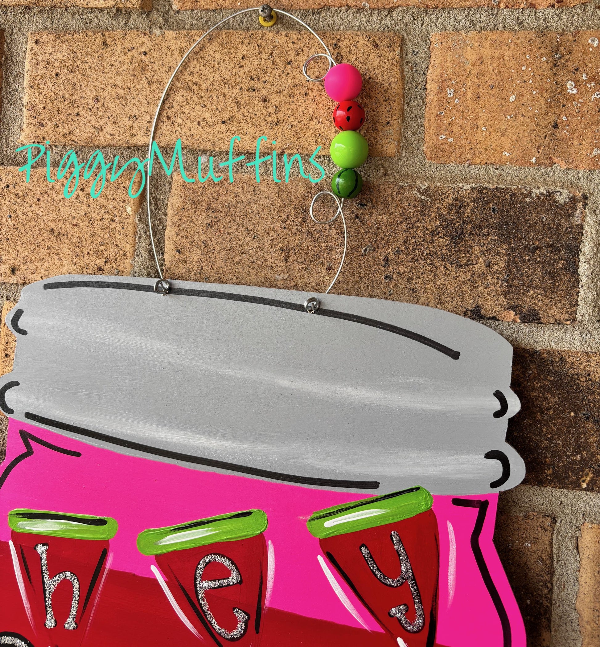 This bright and festive watermelon themed door hanger by PiggyMuffins is perfect all summer long! This is the cutest customized summer door hanger to dress up your front door, porch or backyard patio!