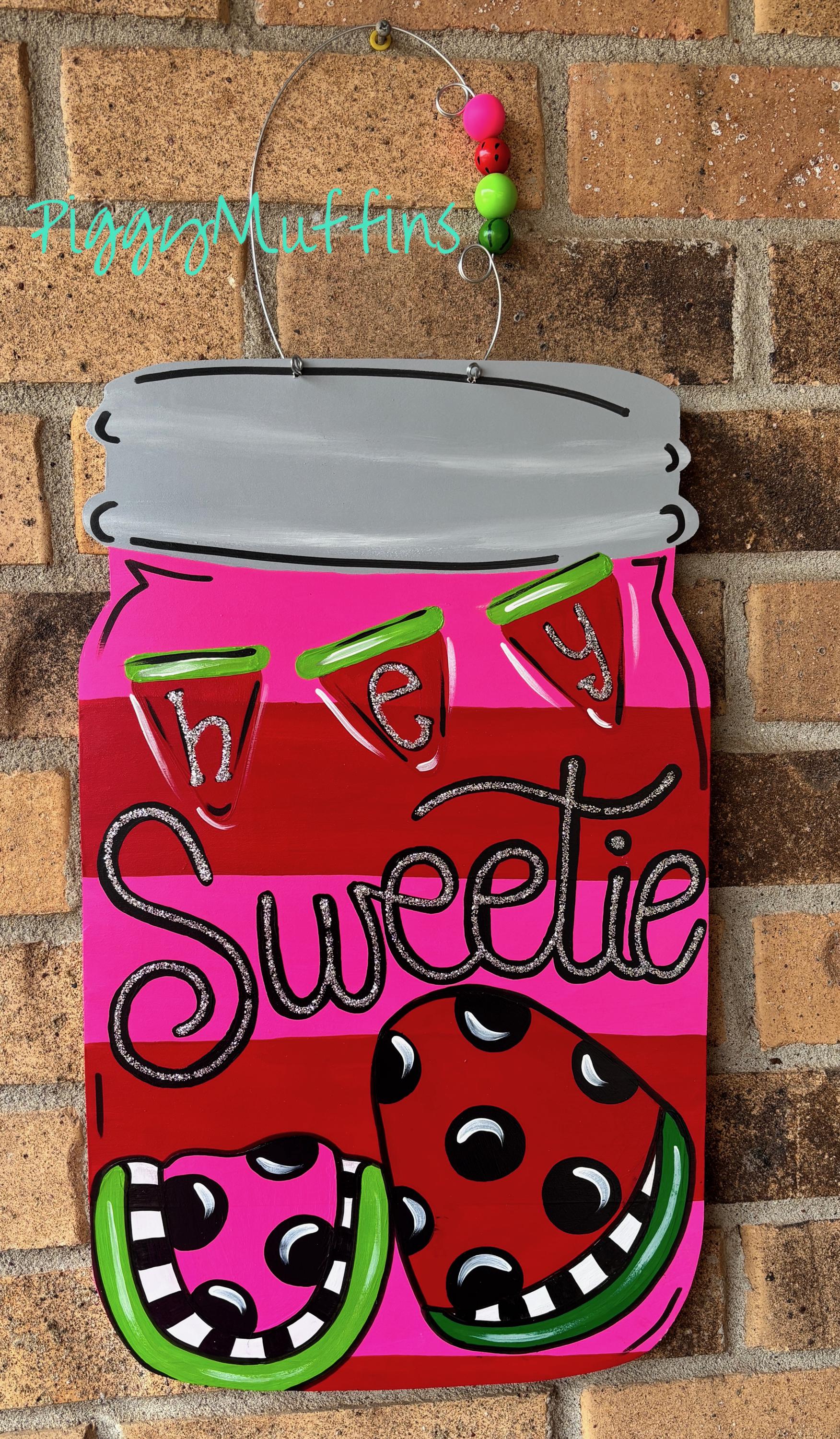 This sign measures 20 inches wide by 20inches tall and is cut out of 1/4 inch board, sanded and painted with acrylic paint. Accented with floral greenery and faux watermelon slices, it is sealed with a clear protective coating that prevents chipping, peeling, fading, or yellowing. It includes a sturdy wire hanger and coordinating beads and is ready to hang when delivered. A coordinating bow can be added for an additional charge at checkout.